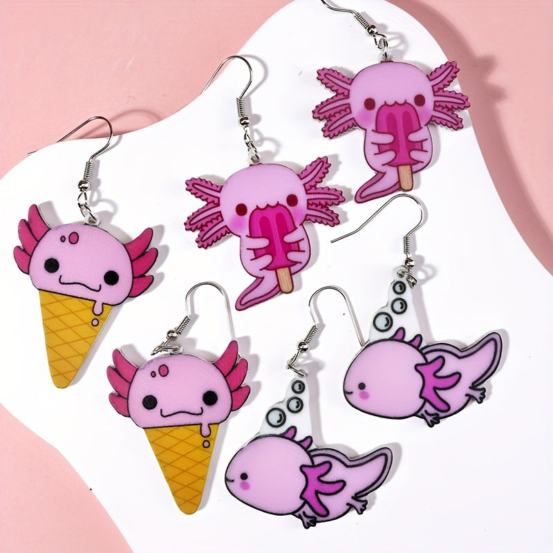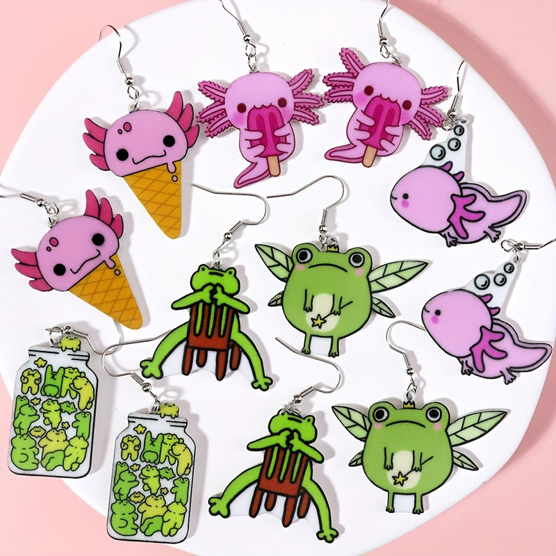 Cartoon Animal Earrings: Salamanders, Frogs, Ice Cream Cones