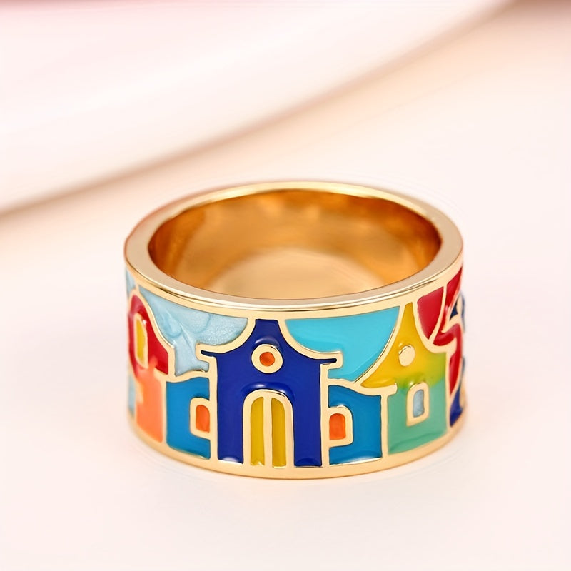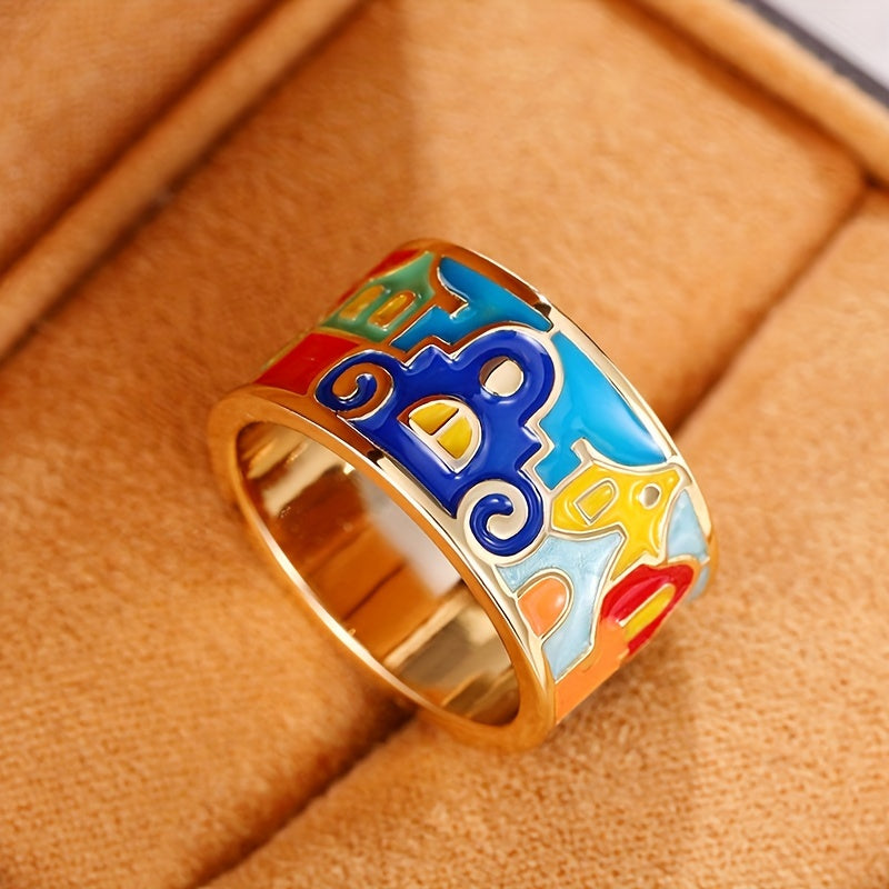 Vibrant ring with synthetic stone, perfect for daily wear, parties, and gift giving. Features fashionable artistic design.