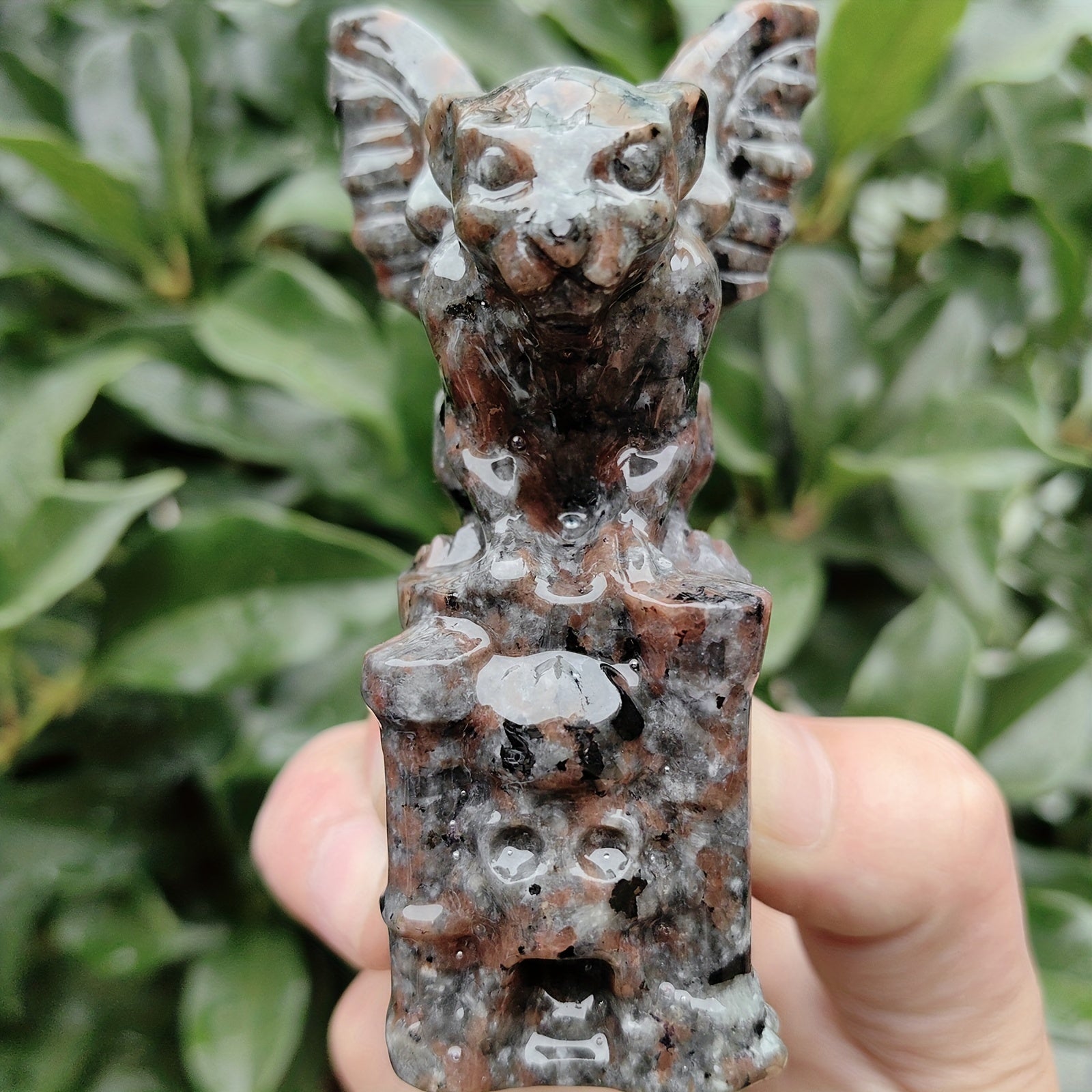 Add a spooky touch to your Halloween decor with these natural flamestone hand-carved castle gargoyles. Perfect for creating an eerie atmosphere in your home or yard.