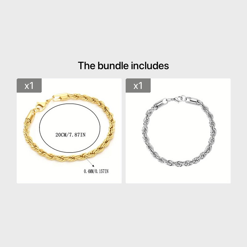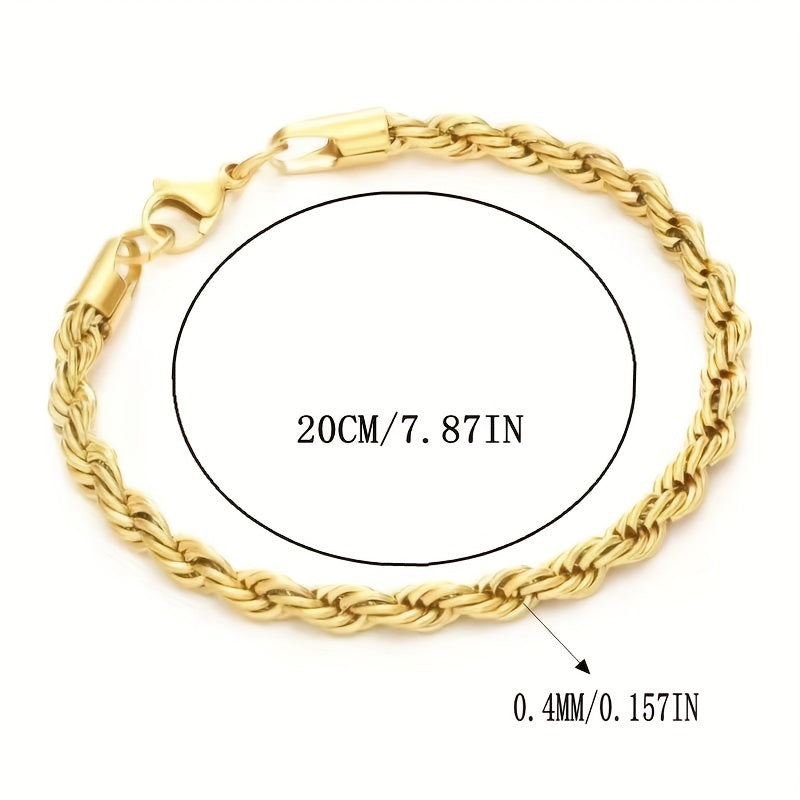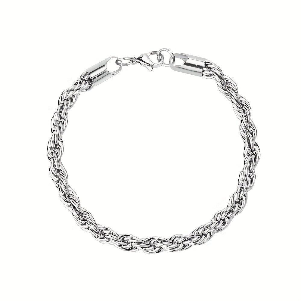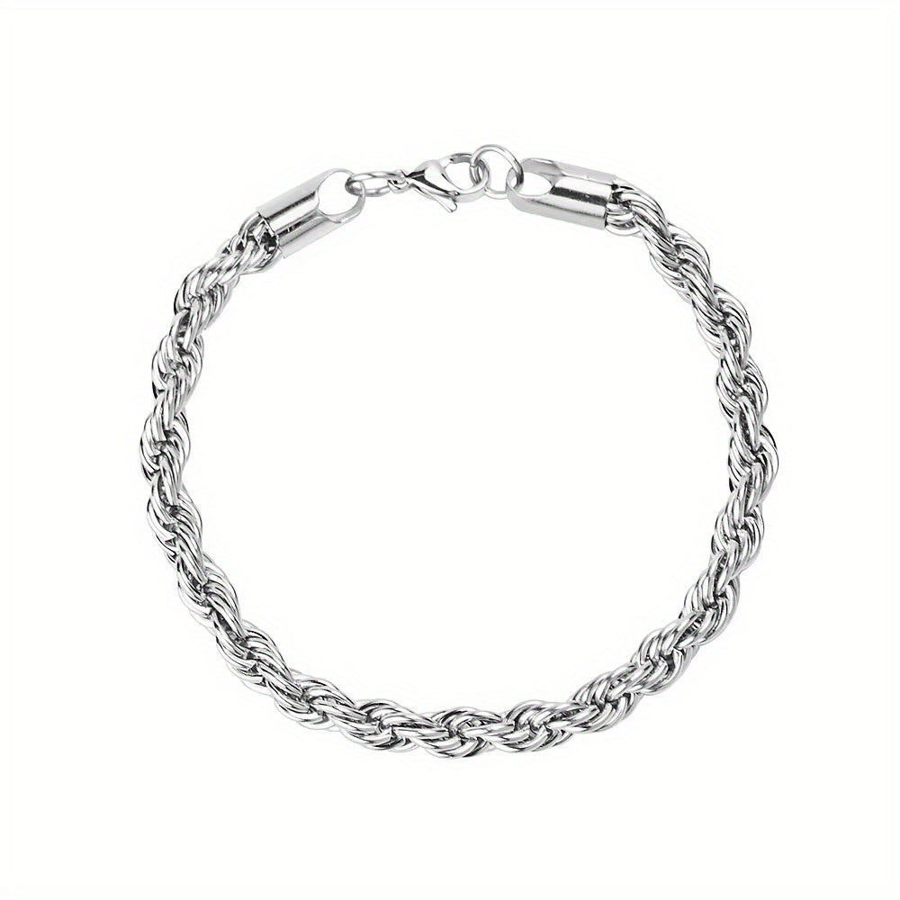 This hip hop style bracelet features a 4mm twist rope chain design made of stainless steel for a sleek look.