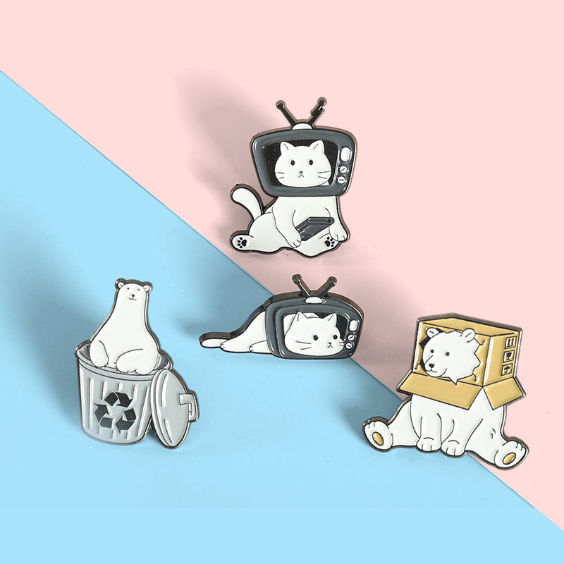 Adorn your backpack, clothes, hats, caps with this cute animal jewelry set that includes a cat enamel brooch and a cartoon polar bear lapel pin. Add a touch of whimsy to your style!