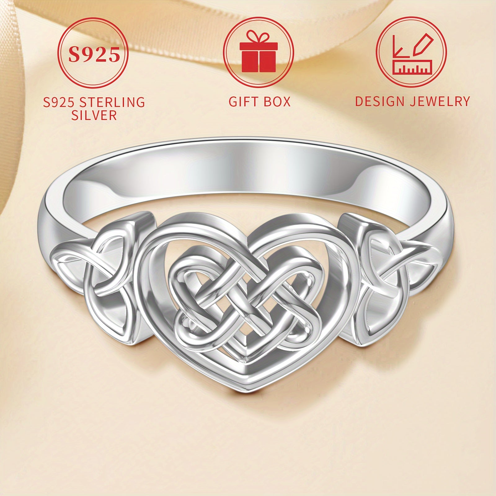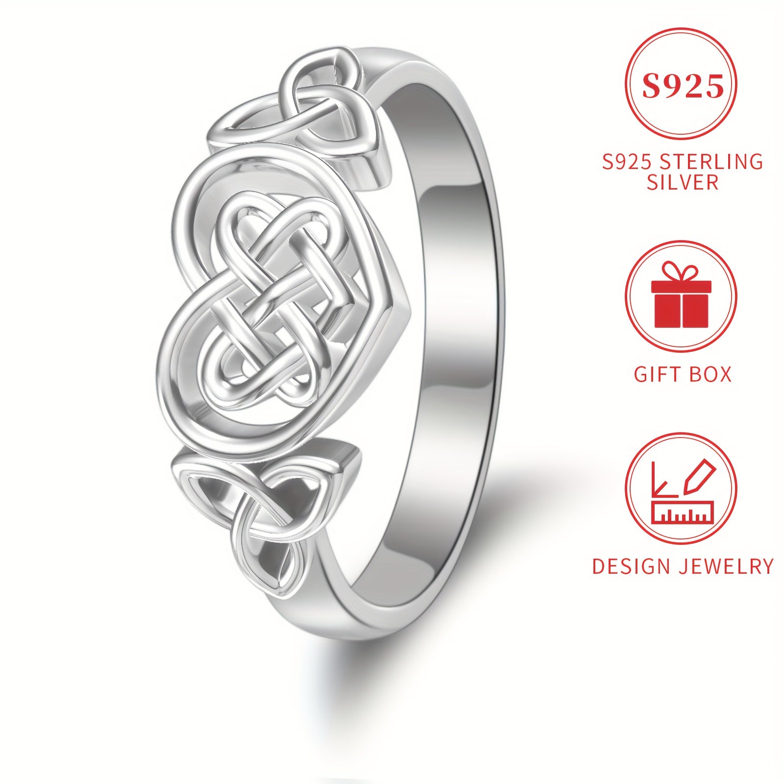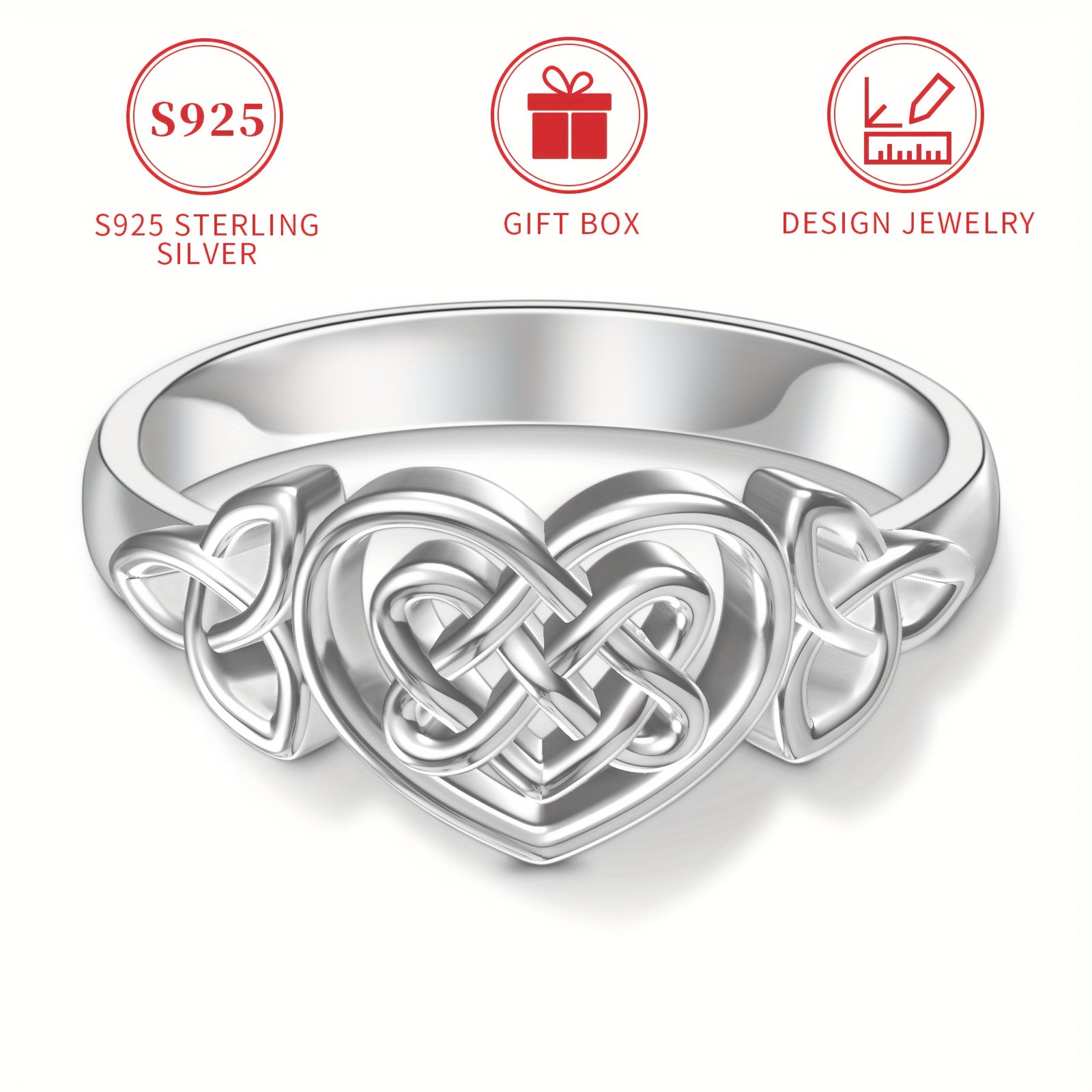 This S925 Celtic Knot Heart Ring is a classic style piece for women. It features a beautiful silver plated finish and is handcrafted with attention to detail.