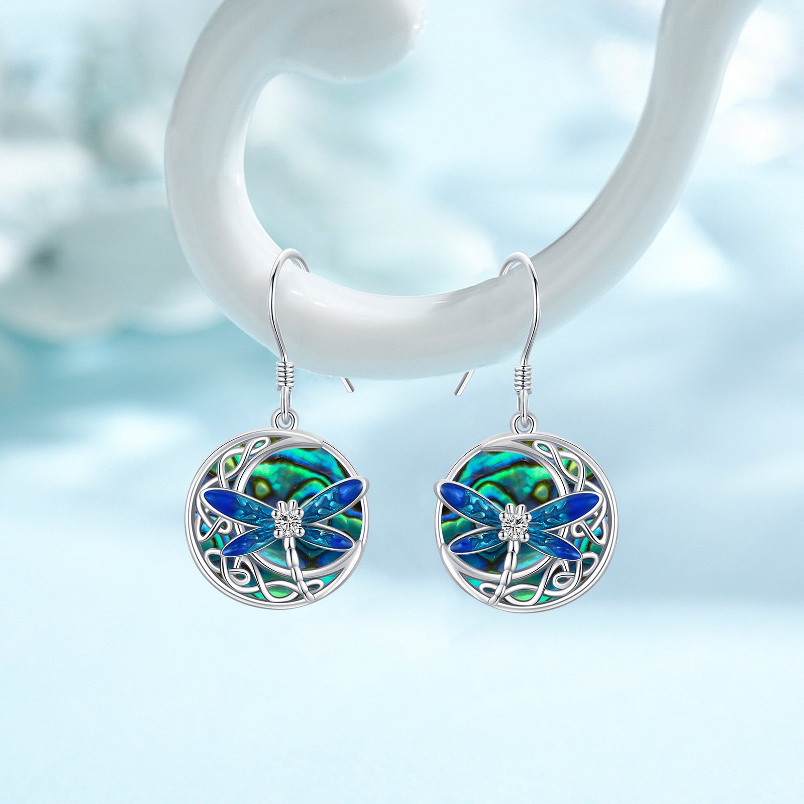 Celtic Moon Dragonfly Earrings with Abalone Shell