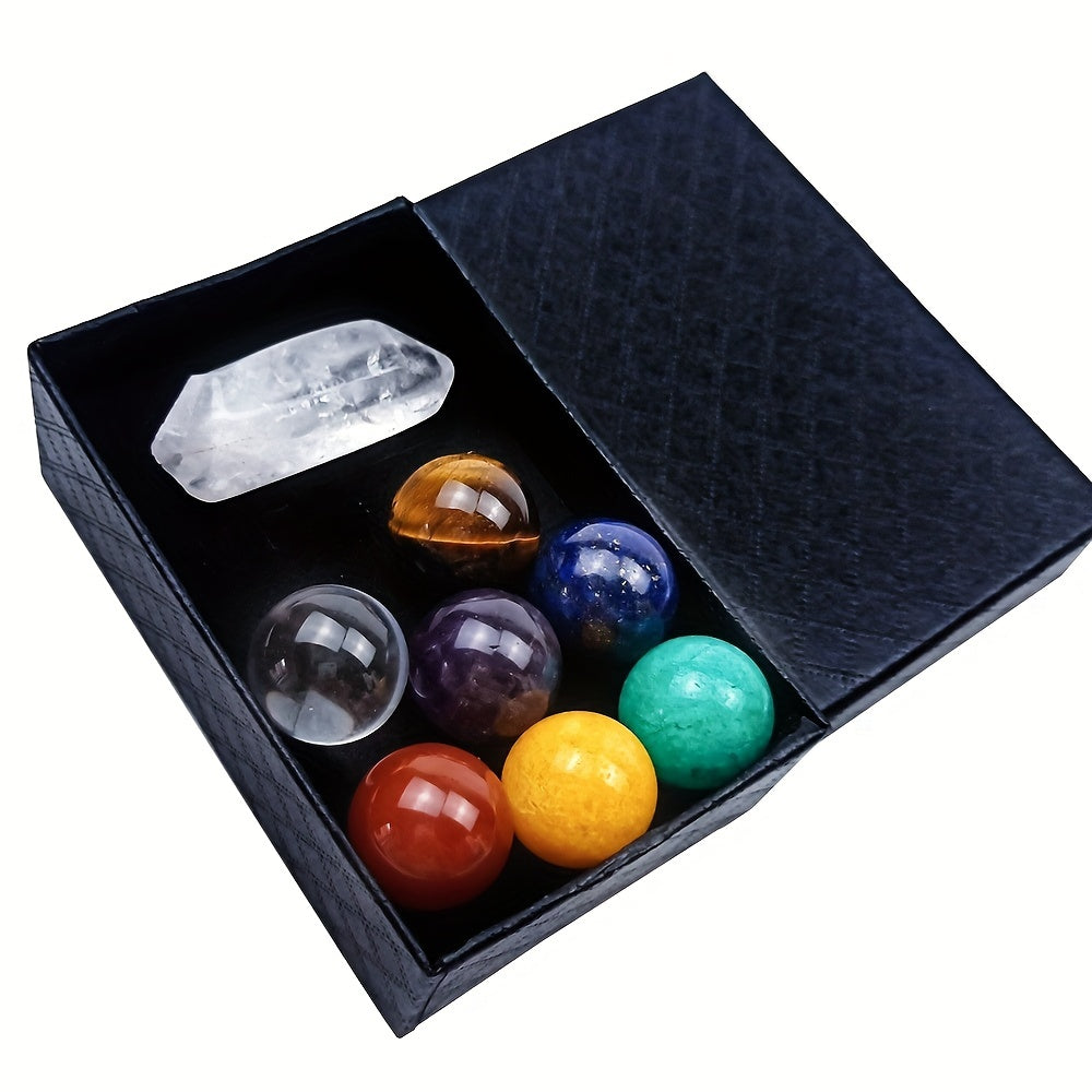 Beautiful set of seven chakra round stones perfect for meditation and healing. Makes a great Christmas gift for yoga enthusiasts. Can also be used as table decoration.