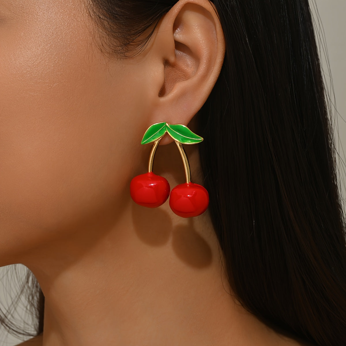 Add a fresh and sweet touch to your casual attire with these cherry drop earrings. Made of high-quality 316 stainless steel with green leaf accents, these earrings are perfect for everyday wear.