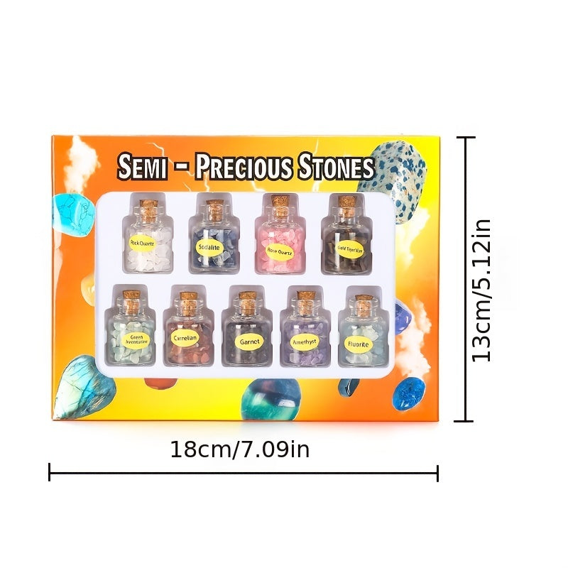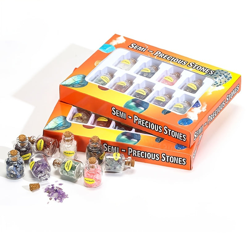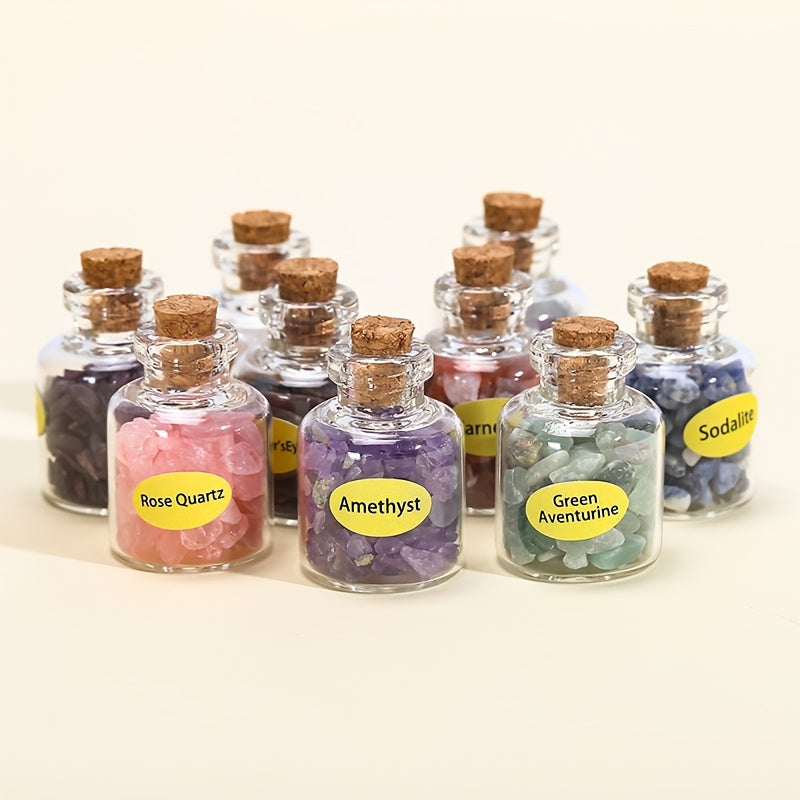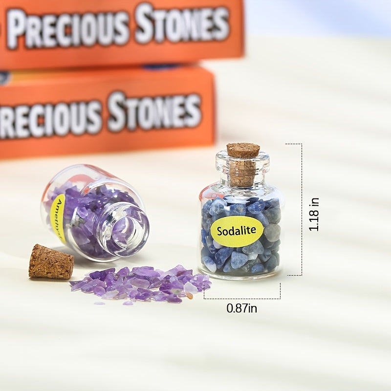 Add a touch of magic to your holiday with these bare stone mineral specimens mini bottles. Each bottle contains a natural crystal or artificial gem, perfect for students or as a unique decoration. Share the joy by sending these as wishing or drifting bottles!