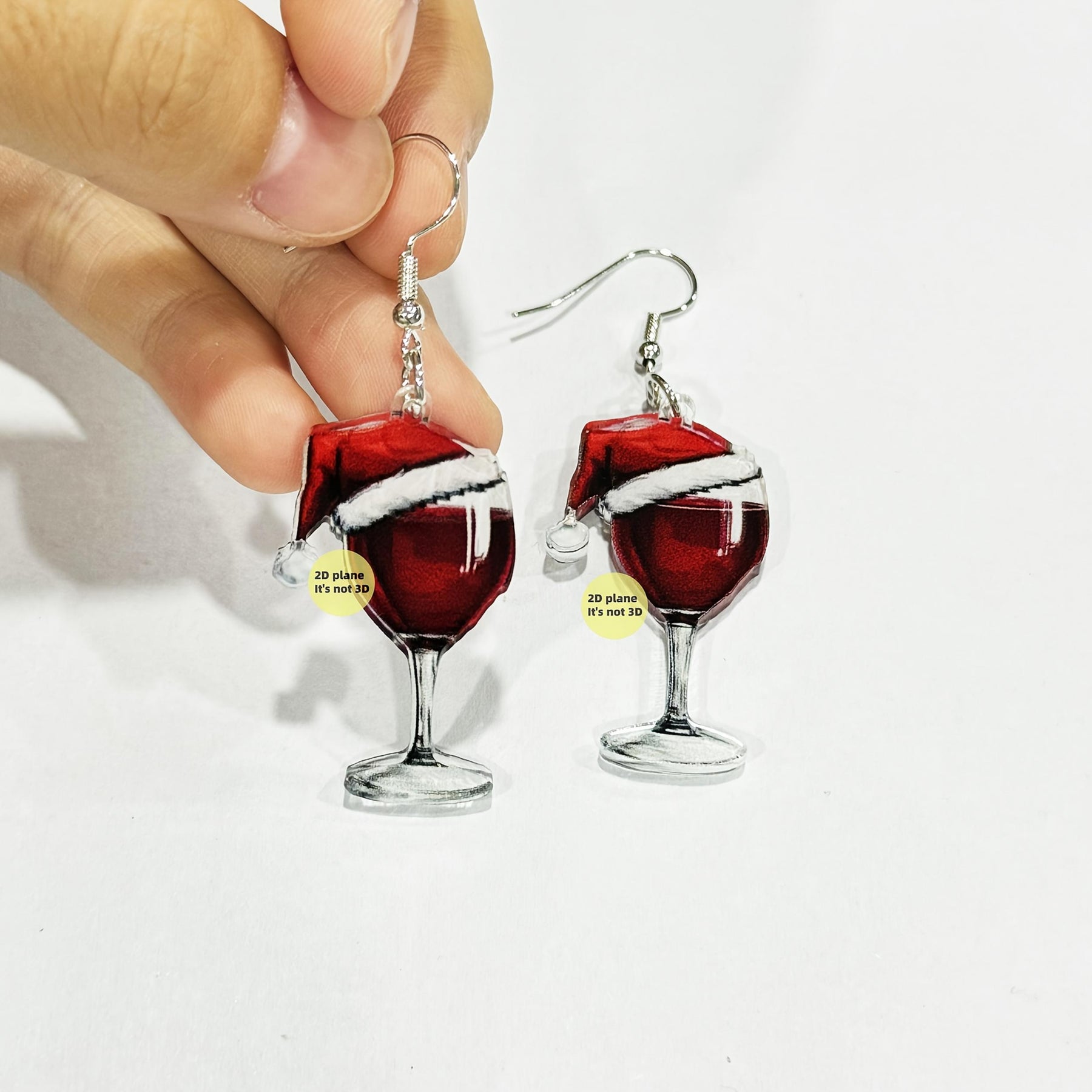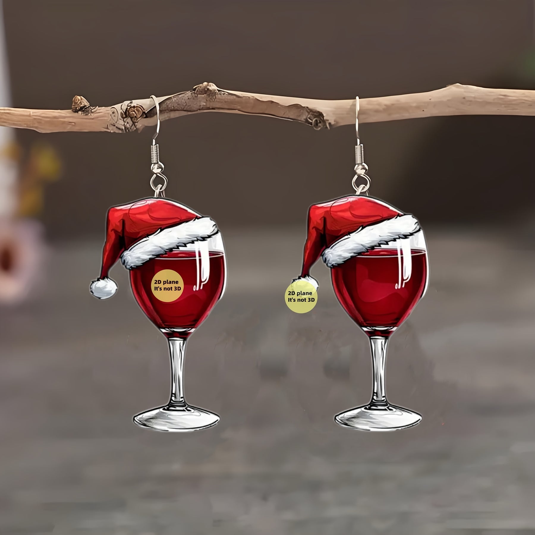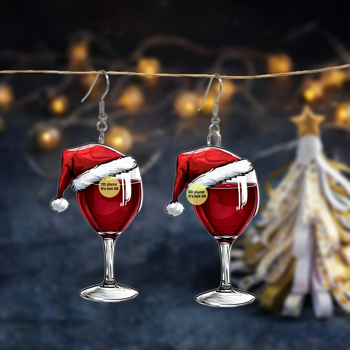 Get into the holiday spirit with these cute Christmas wine glass drop earrings featuring a festive Santa hat design. Perfect party accessory for both men and women.