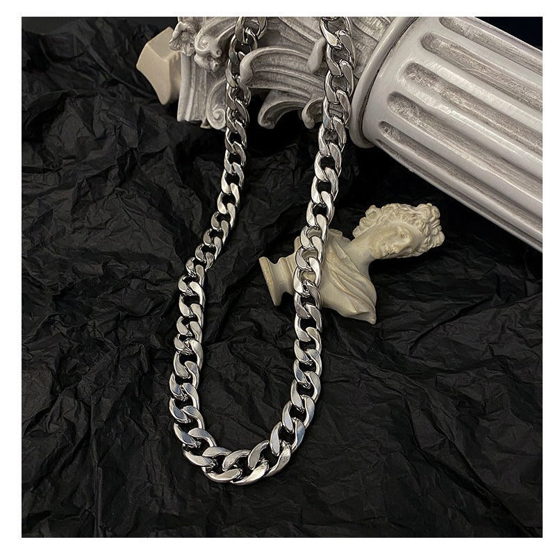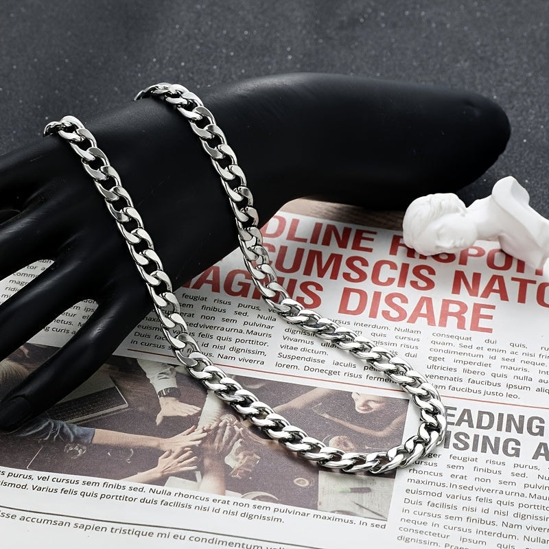 This chunky Cuban link chain necklace is a stylish and edgy accessory for men. Made from high-quality stainless steel, it's durable and long-lasting.