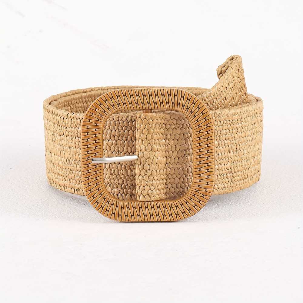 Ceinture bohème classique à boucle carrée, couleur unie, élastique en paille tressée