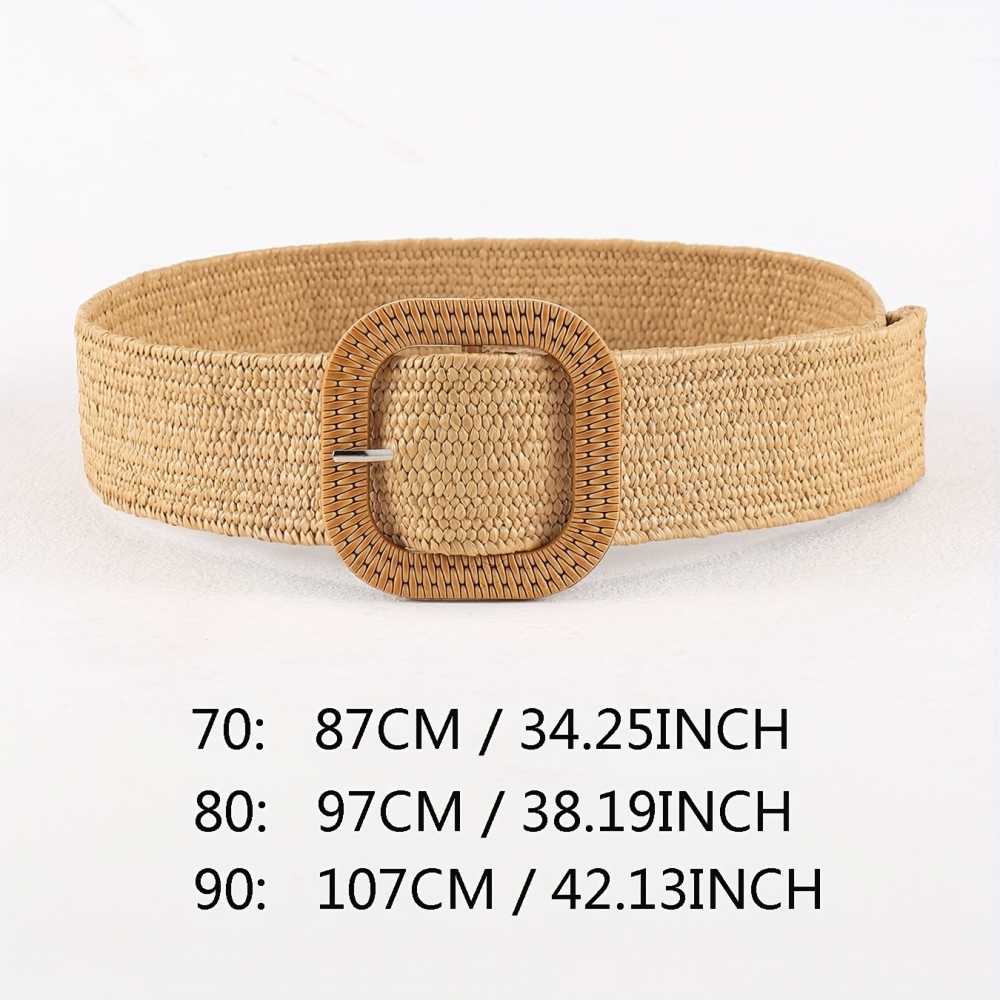 Classic Square Buckle Boho Belt Solid Color Braided Straw Elastic Waistband