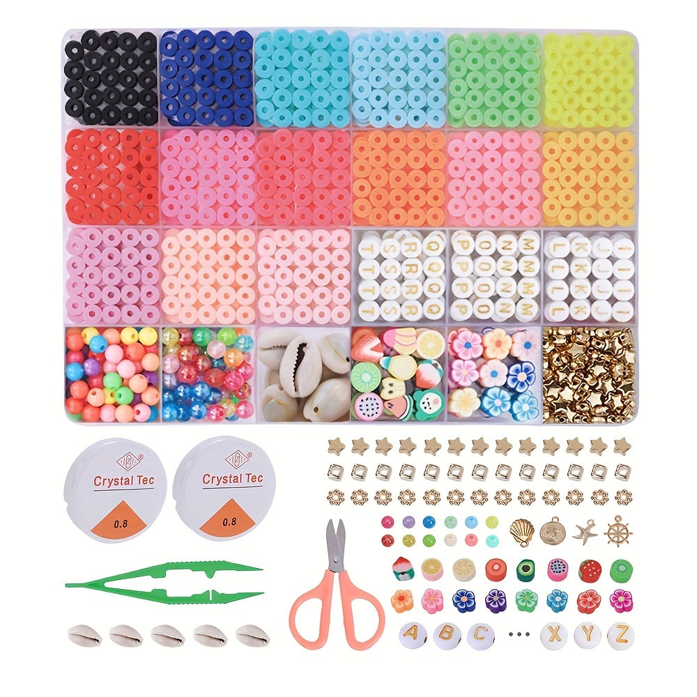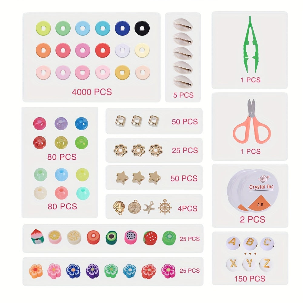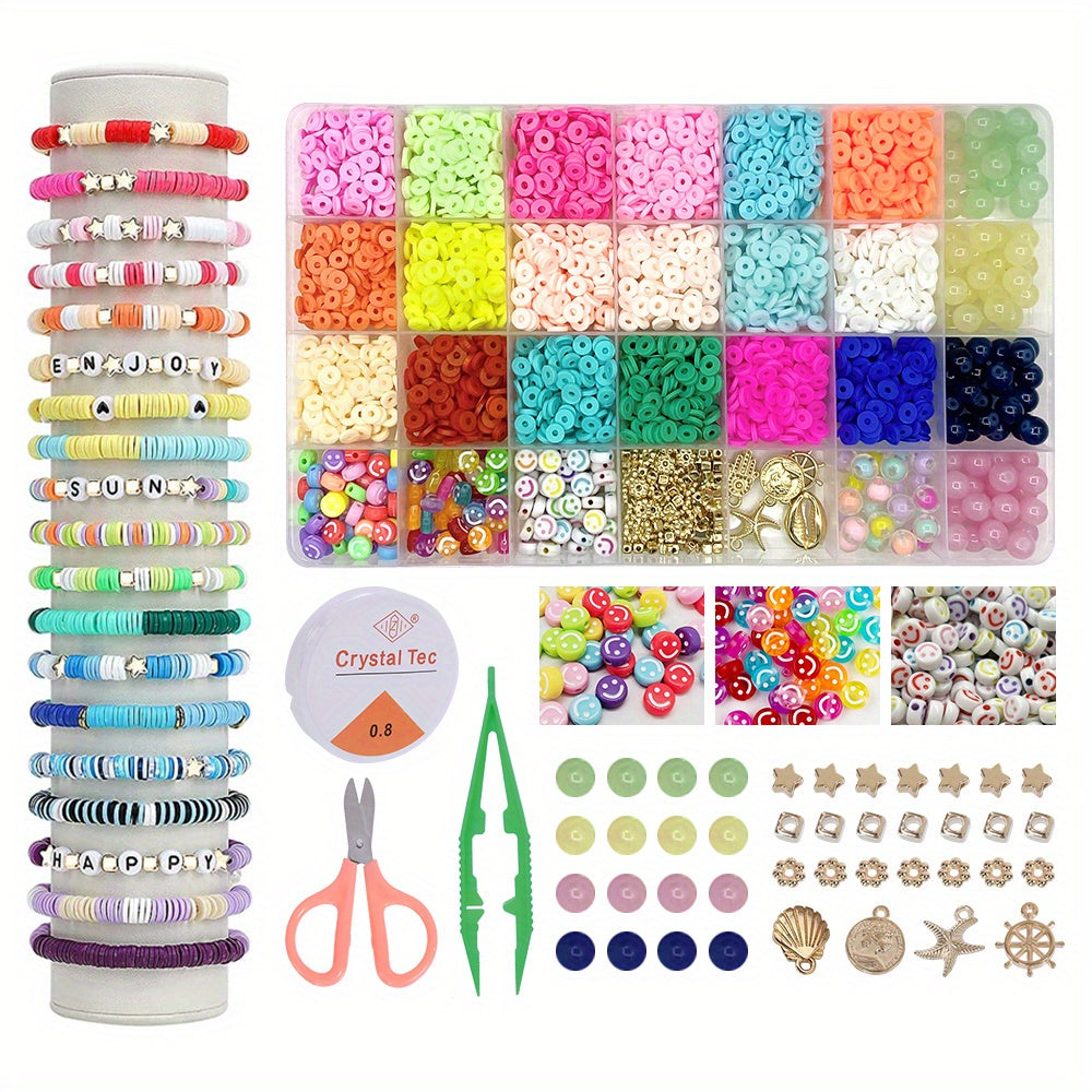 Create stunning bracelets with this kit that includes 4500pcs of polymer clay beads, stone beads, and a pendant. Perfect for crafting unique jewelry pieces.