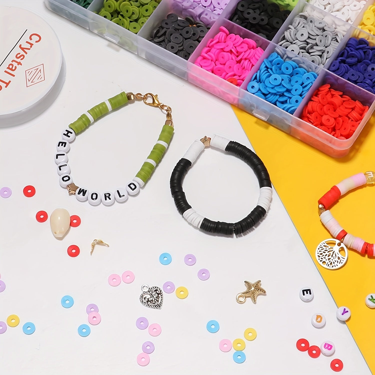 Create your own stylish bracelets with this kit that includes 7000pcs flat round polymer clay beads in 24 vibrant colors. Perfect for DIY crafts and jewelry making.