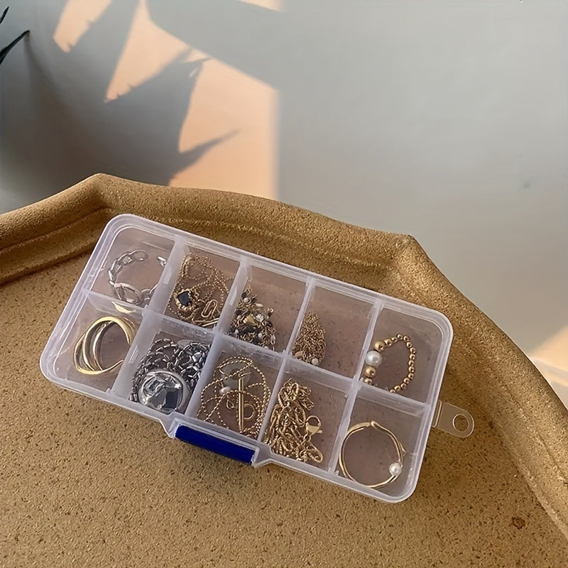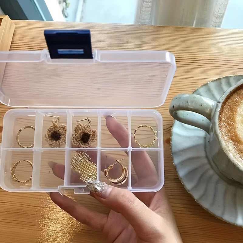 Keep your jewelry, earrings, and beads organized with this transparent sorting storage box. The clear plastic design allows you to easily see the contents inside.