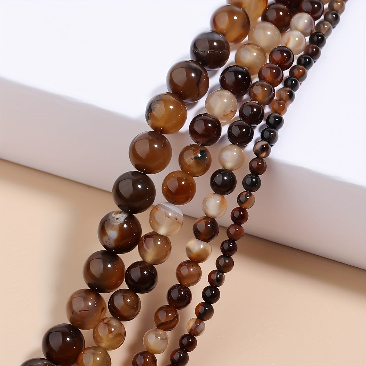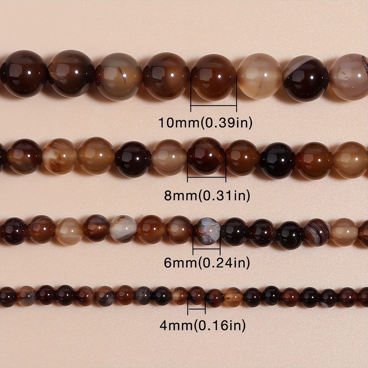Beautiful natural stone coffee stripe agates gemstone loose beads available in 4mm, 6mm, 8mm, and 10mm sizes. Perfect for jewelry making and DIY accessories.