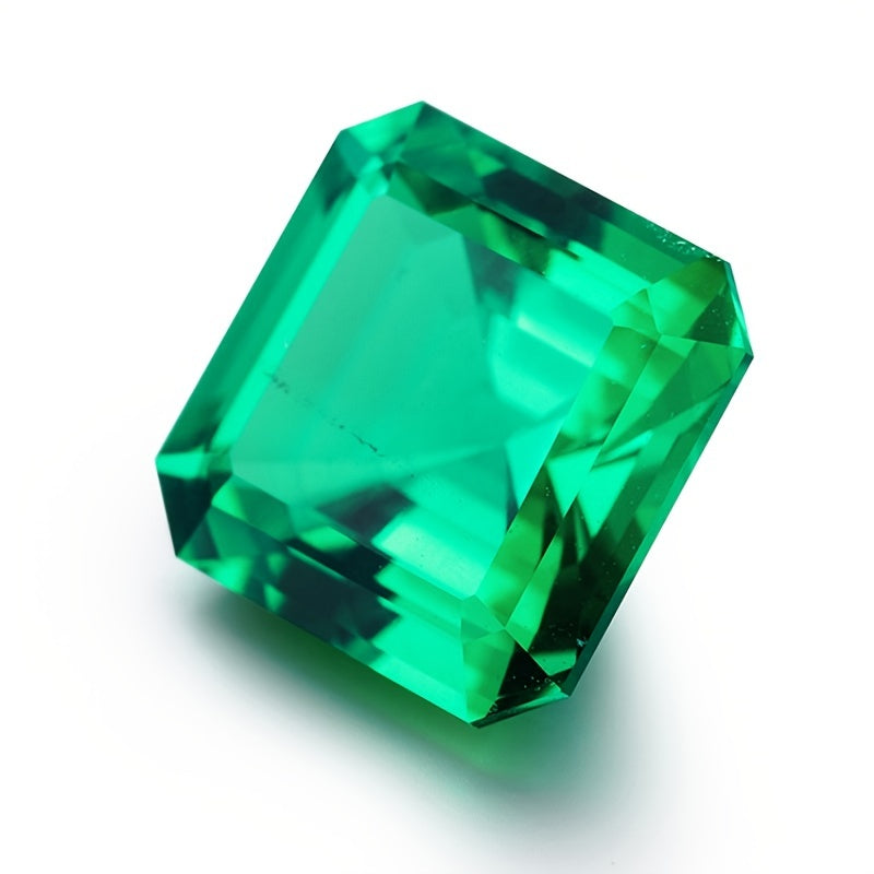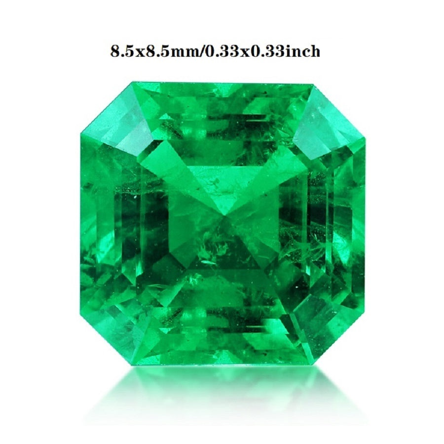 This hydrothermal created loose gemstone features a stunning Asscher cut Colombian lab grown green emerald, perfect for creating unique jewelry pieces.