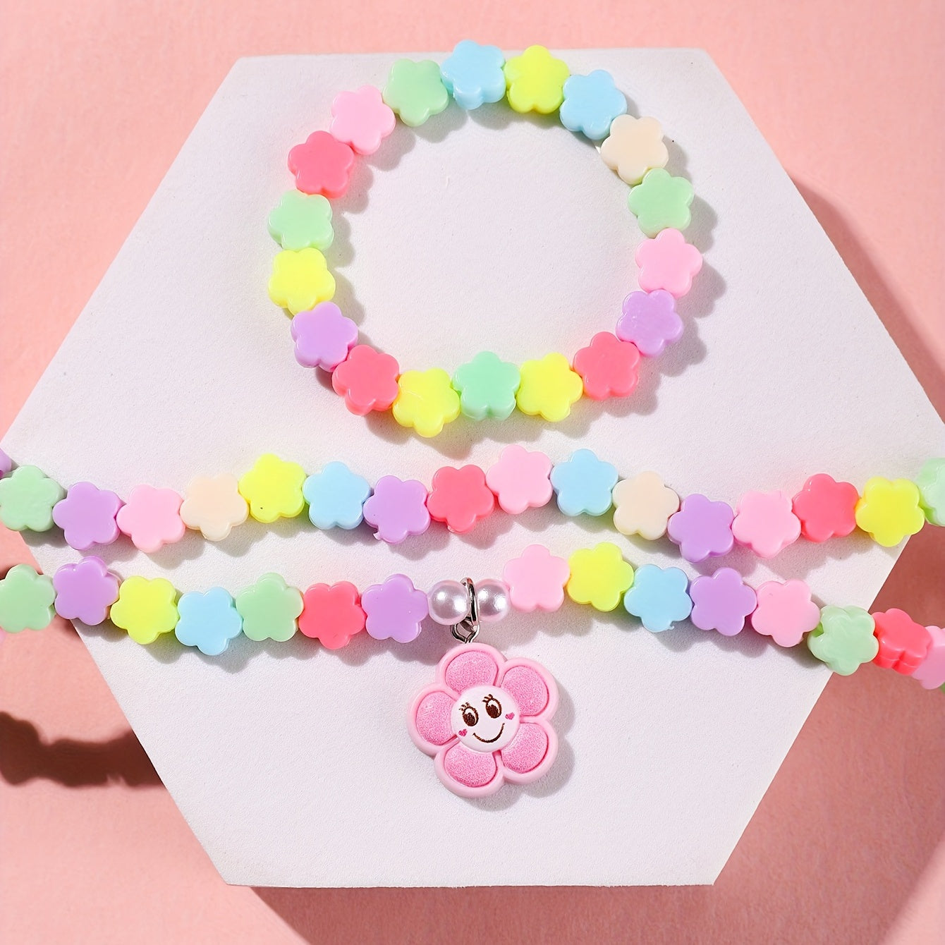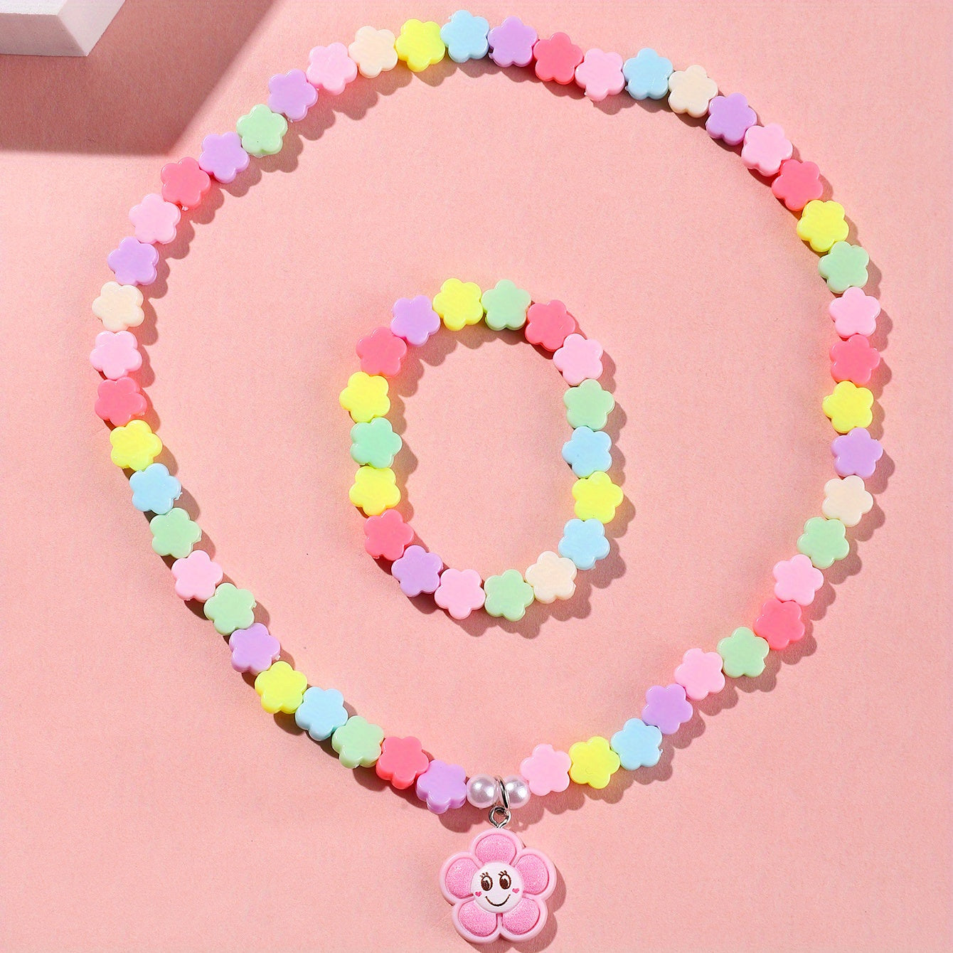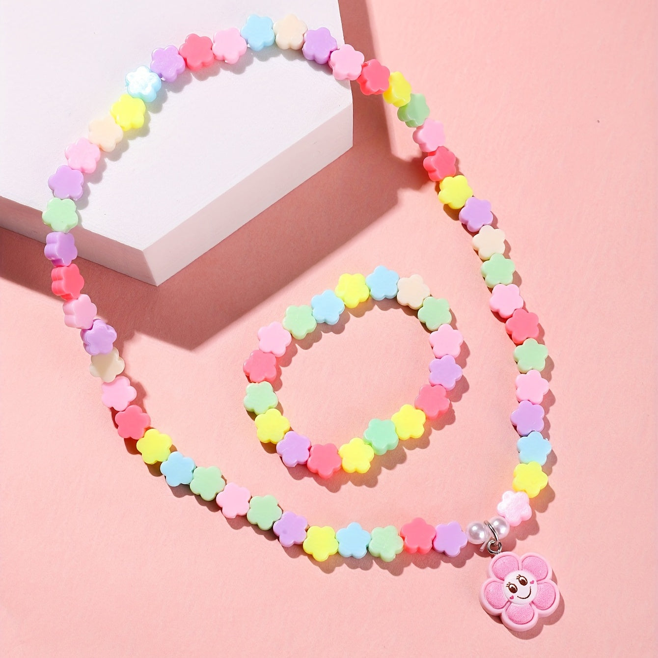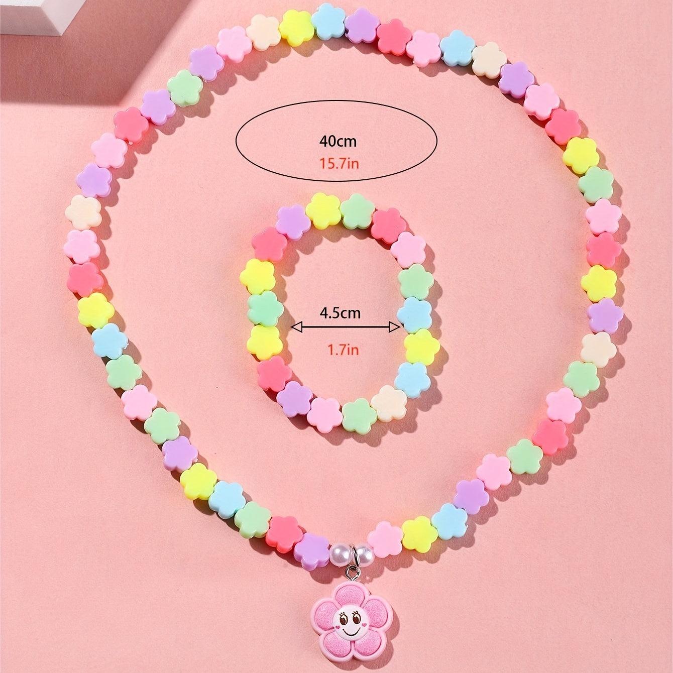 This set includes 2pcs of necklace and bracelet adorned with vibrant acrylic flowers. It's a lovely accessory to complement your daily outfits and ideal for summer vacation. Makes a sweet birthday gift for girls.