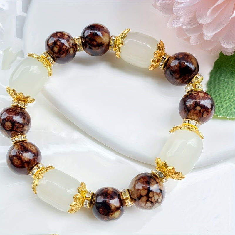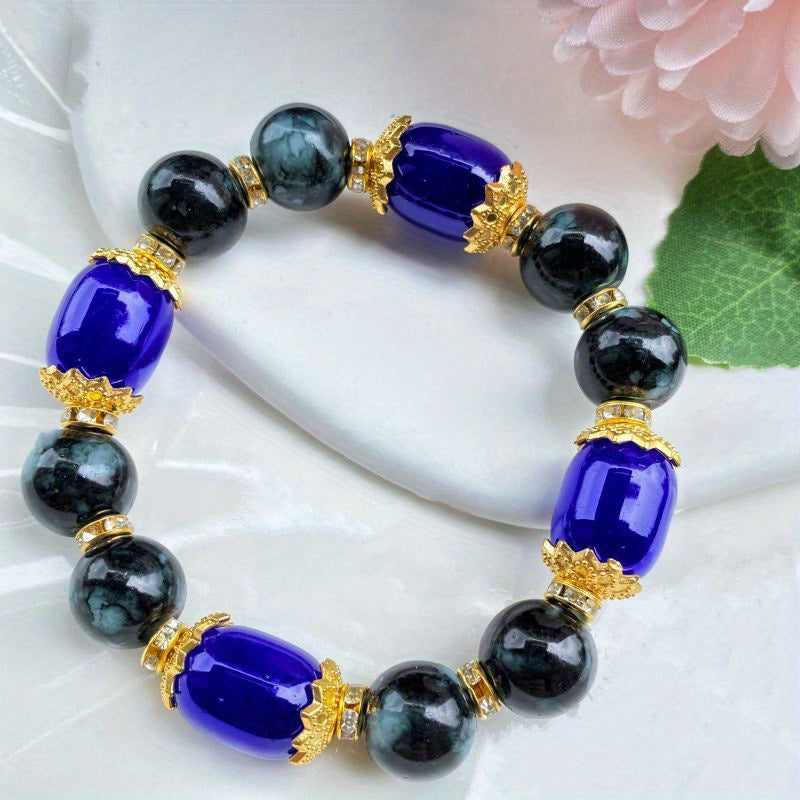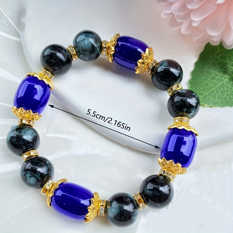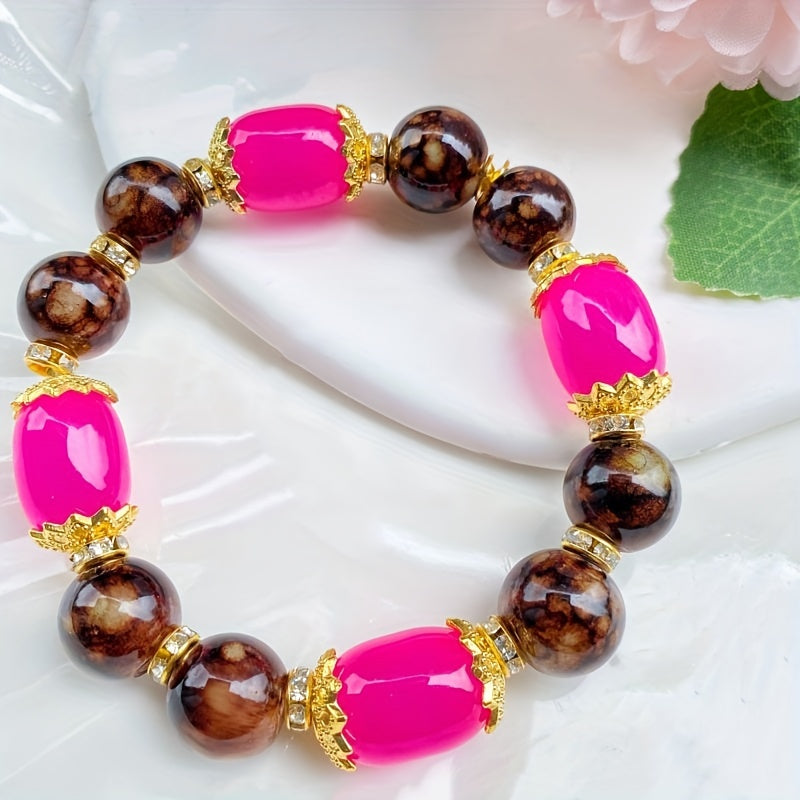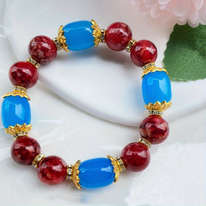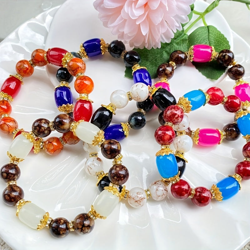 This stunning bracelet features colorful agate stones arranged on elastic thread for easy wearing. It adds a pop of color to any outfit.
