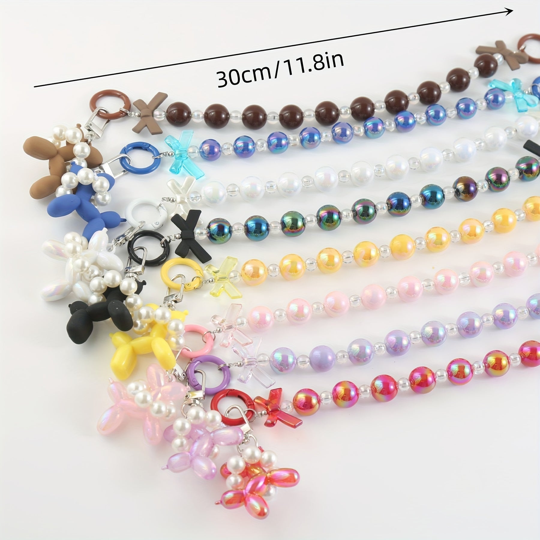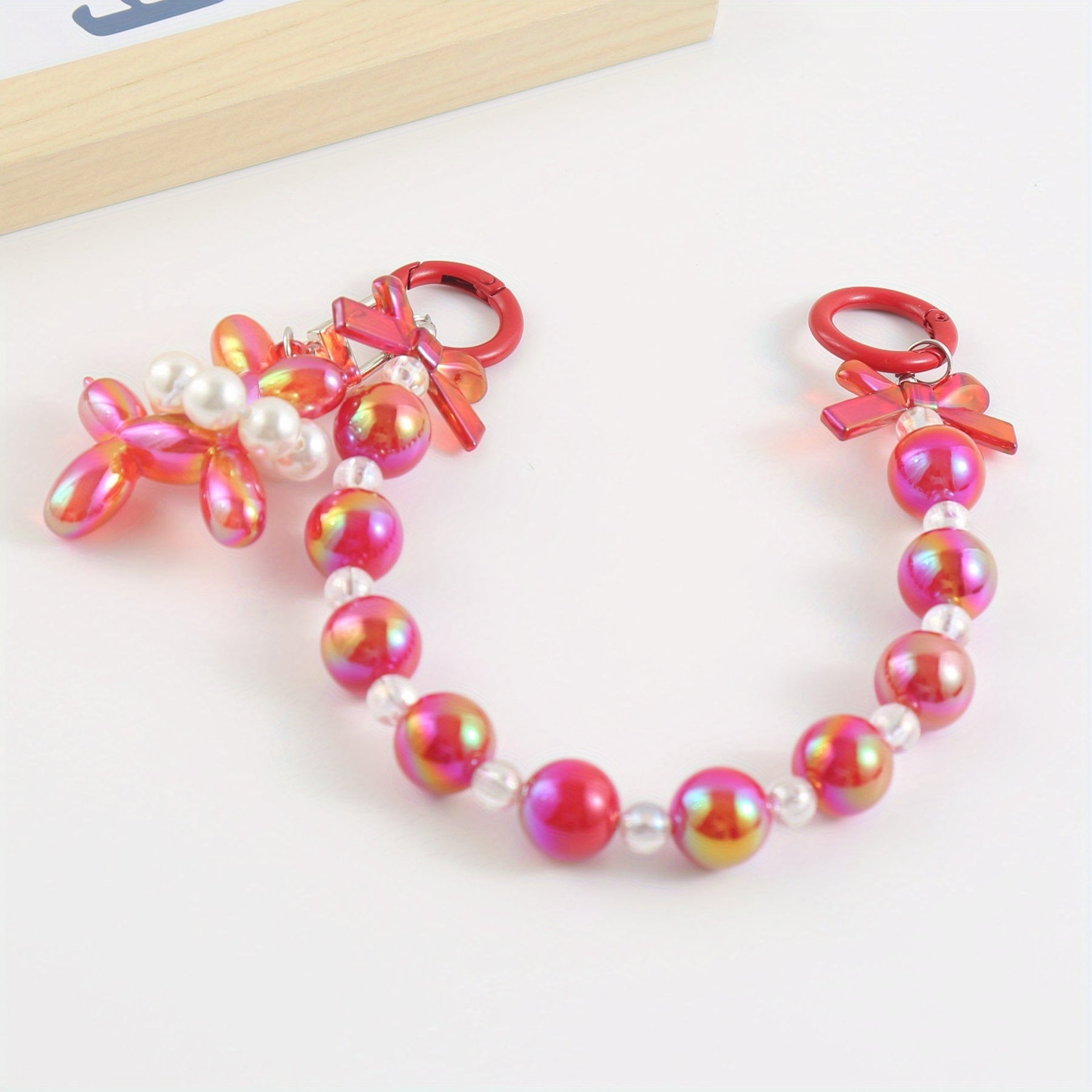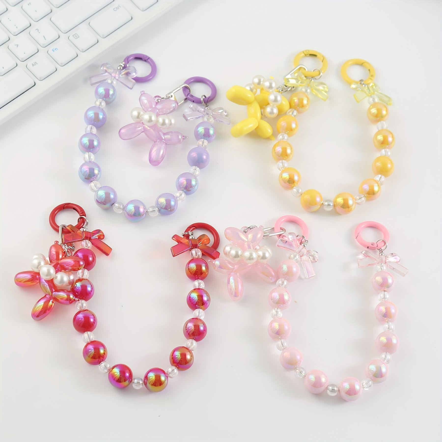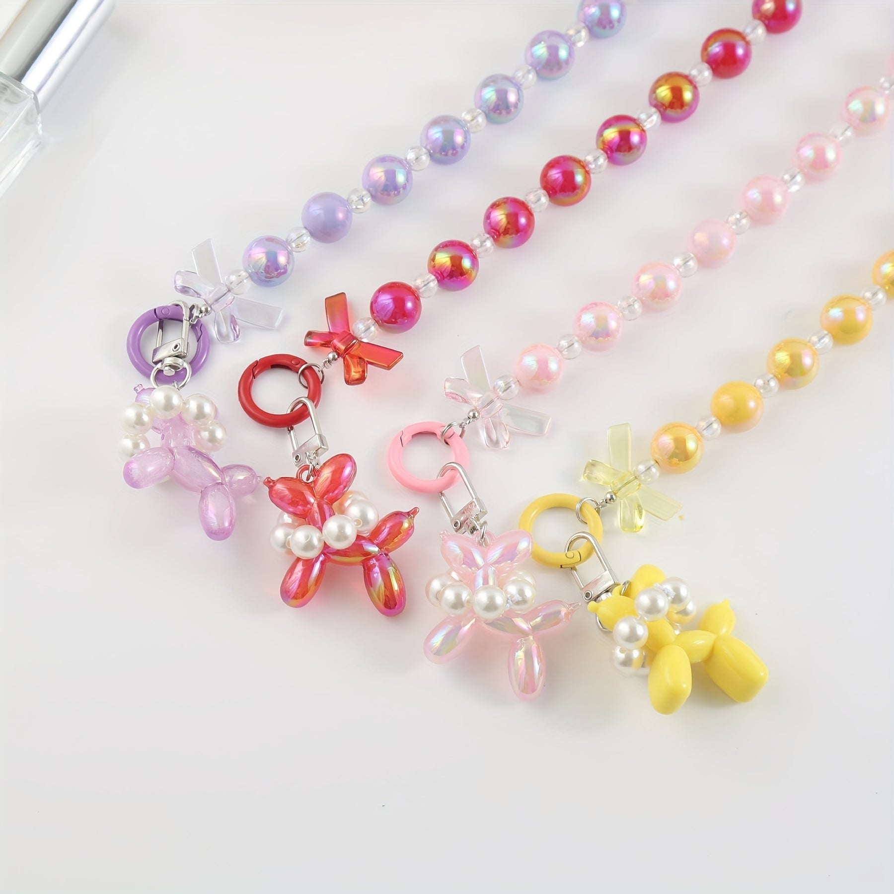 Add a splash of color to your accessories with this vibrant beaded chain featuring a balloon dog and butterfly bow design. Perfect for your mobile phone case or keys!