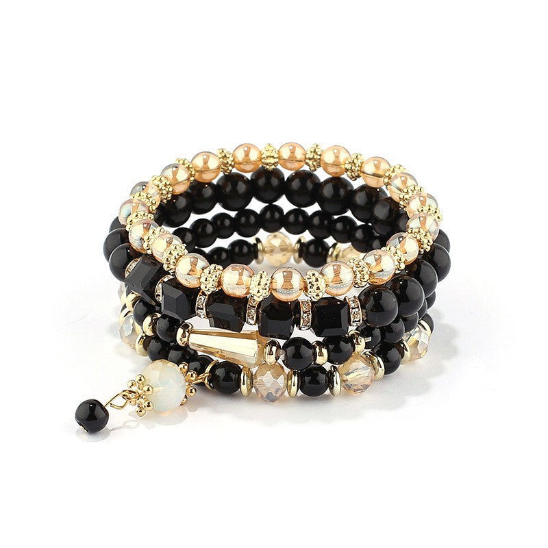 Enhance your look with this colorful beaded bracelet set. Made with stretch design for a comfortable fit. Plated with 14K gold for a luxurious finish.