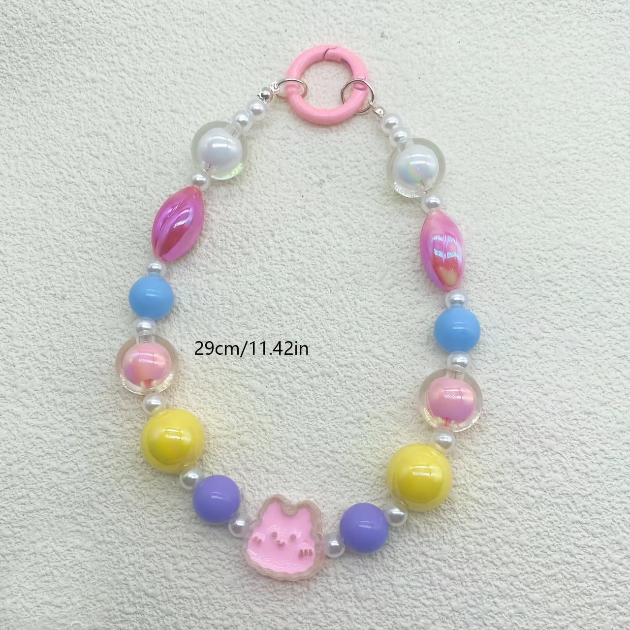 Add a touch of color and charm to your phone bag with this vibrant beaded pendant. Perfect for personalizing your mobile accessory.