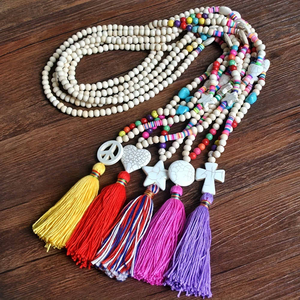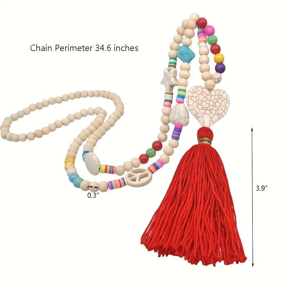 Add a touch of bohemian flair to your summer outfits with this colorful beaded tassel necklace. The stone pendant adds an earthy vibe, perfect for holiday wear.