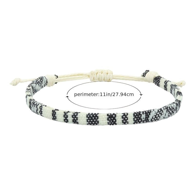 Add a pop of color to your summer beach look with this boho woven rope bracelet. The adjustable design makes it easy to wear and style.