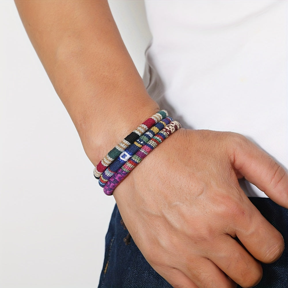 Add a pop of color to your wrist with this bohemian-style bracelet. Hand-braided with vibrant hues, it's perfect for stacking or wearing solo.