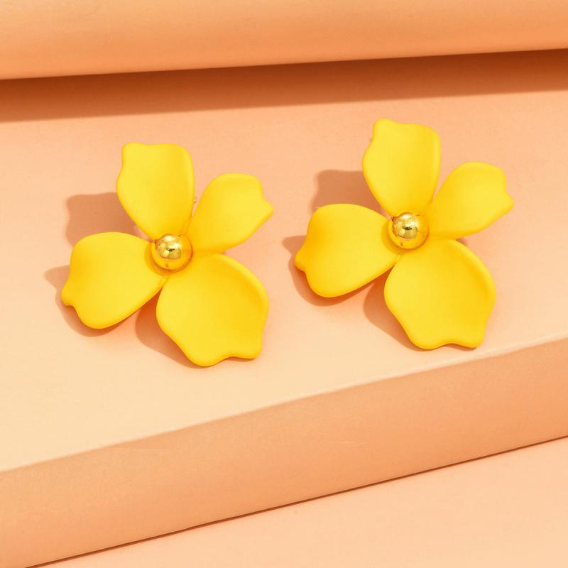 These bright candy stud earrings are perfect for adding a pop of color to your outfit. The flower-shaped design adds a touch of bohemian flair, making them ideal for a fun vacation look.