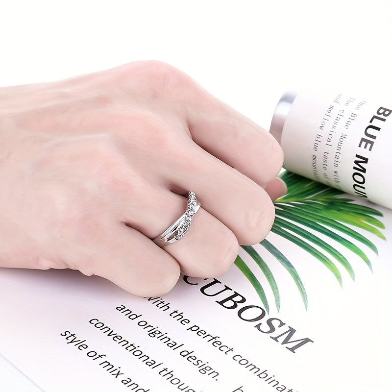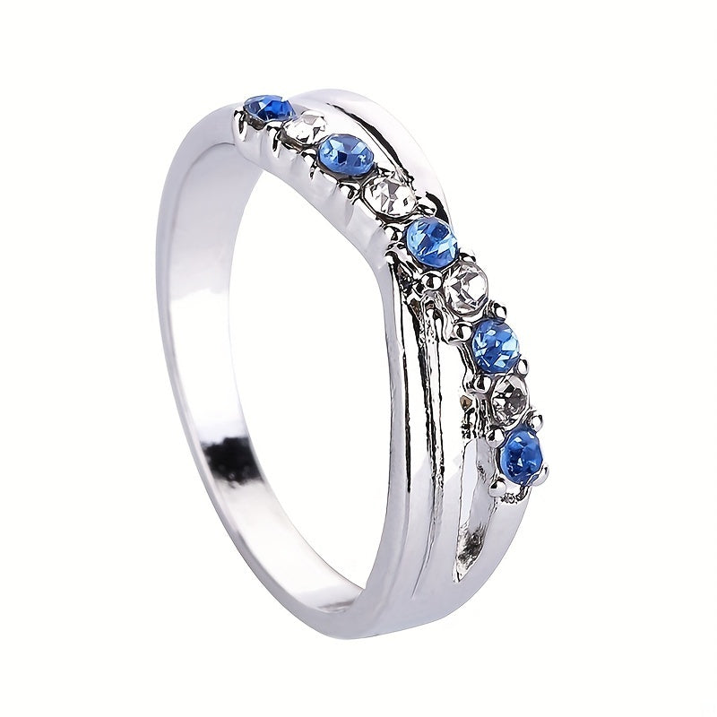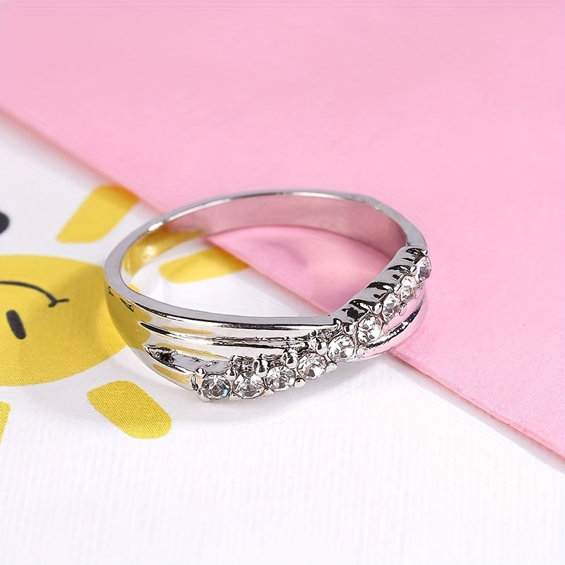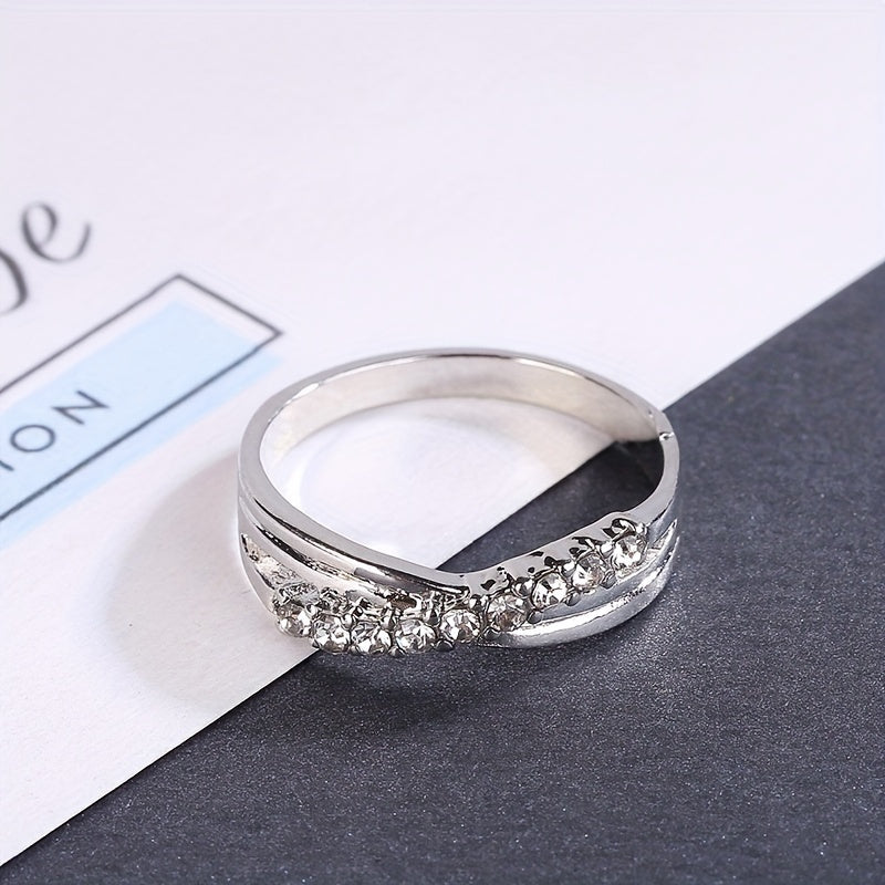 Add a touch of elegance with this unique Cross Two Faux Diamond Ring featuring colorful rhinestones. Perfect for any occasion!