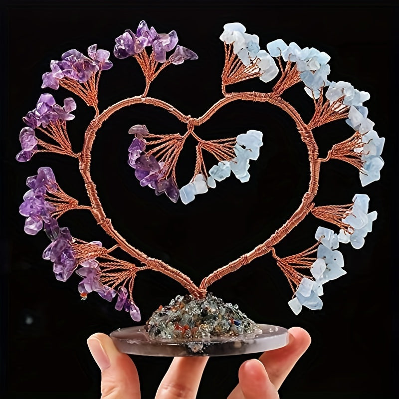 This tabletop decoration features a Love Tree design made of Healing Crystals for a unique touch. Perfect for healing and meditation practices, or as a decorative piece for any space.