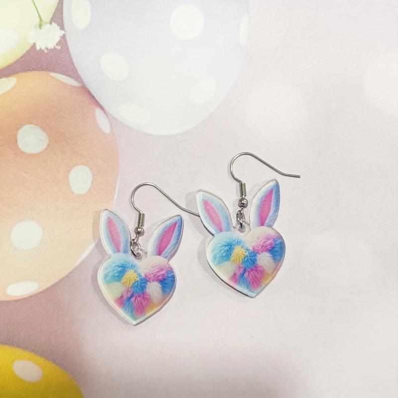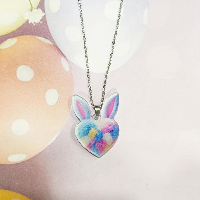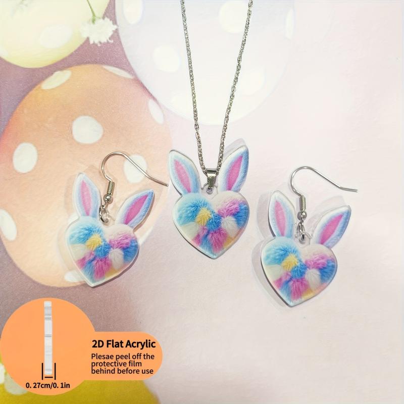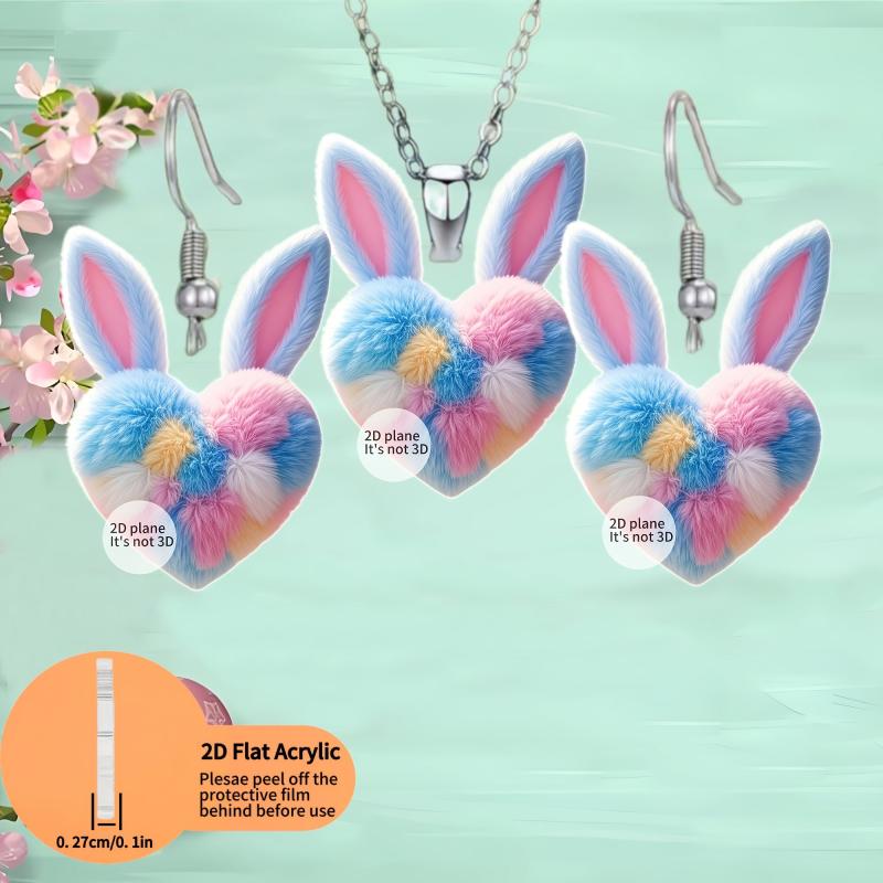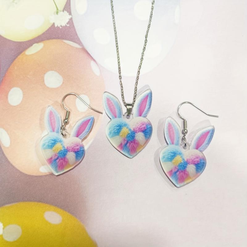Colorful Heart Rabbit Women's Earrings & Necklace Set, 3pcs