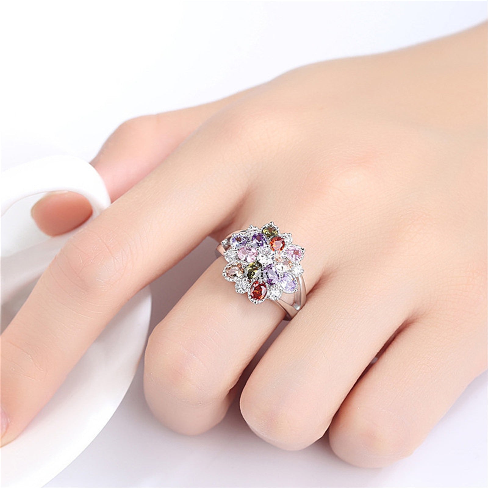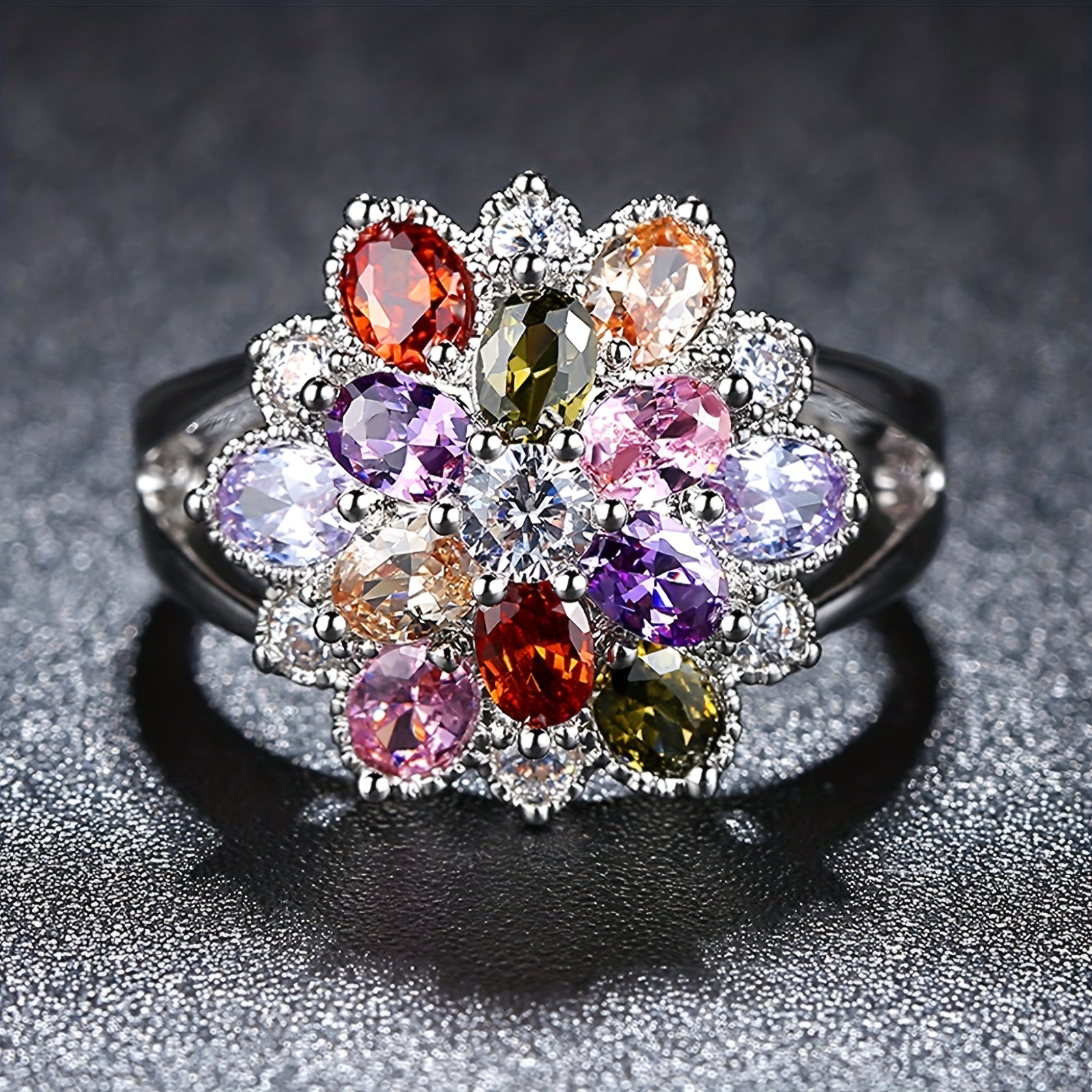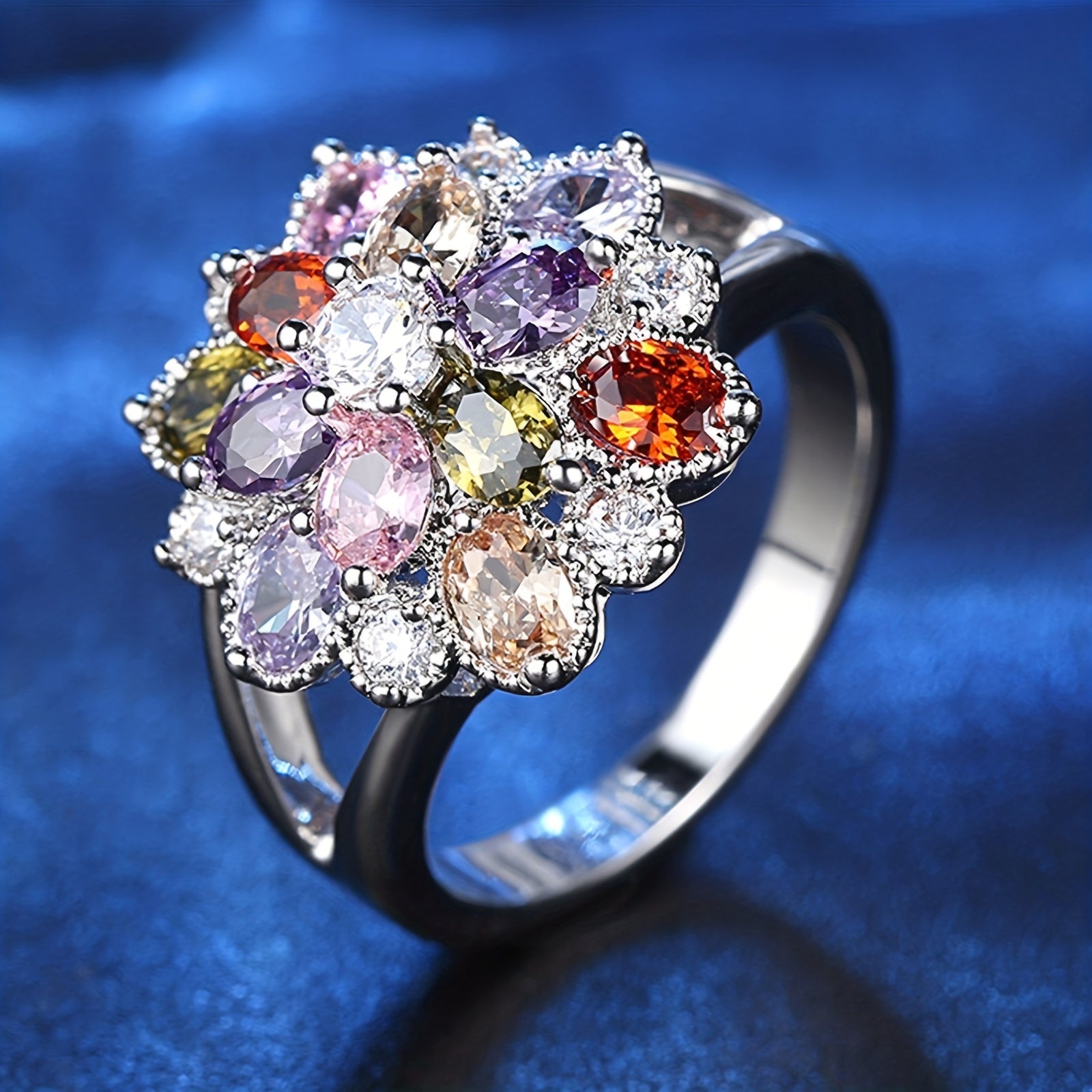 Add a pop of color to your look with this vibrant zircon women's ring that sparkles beautifully.