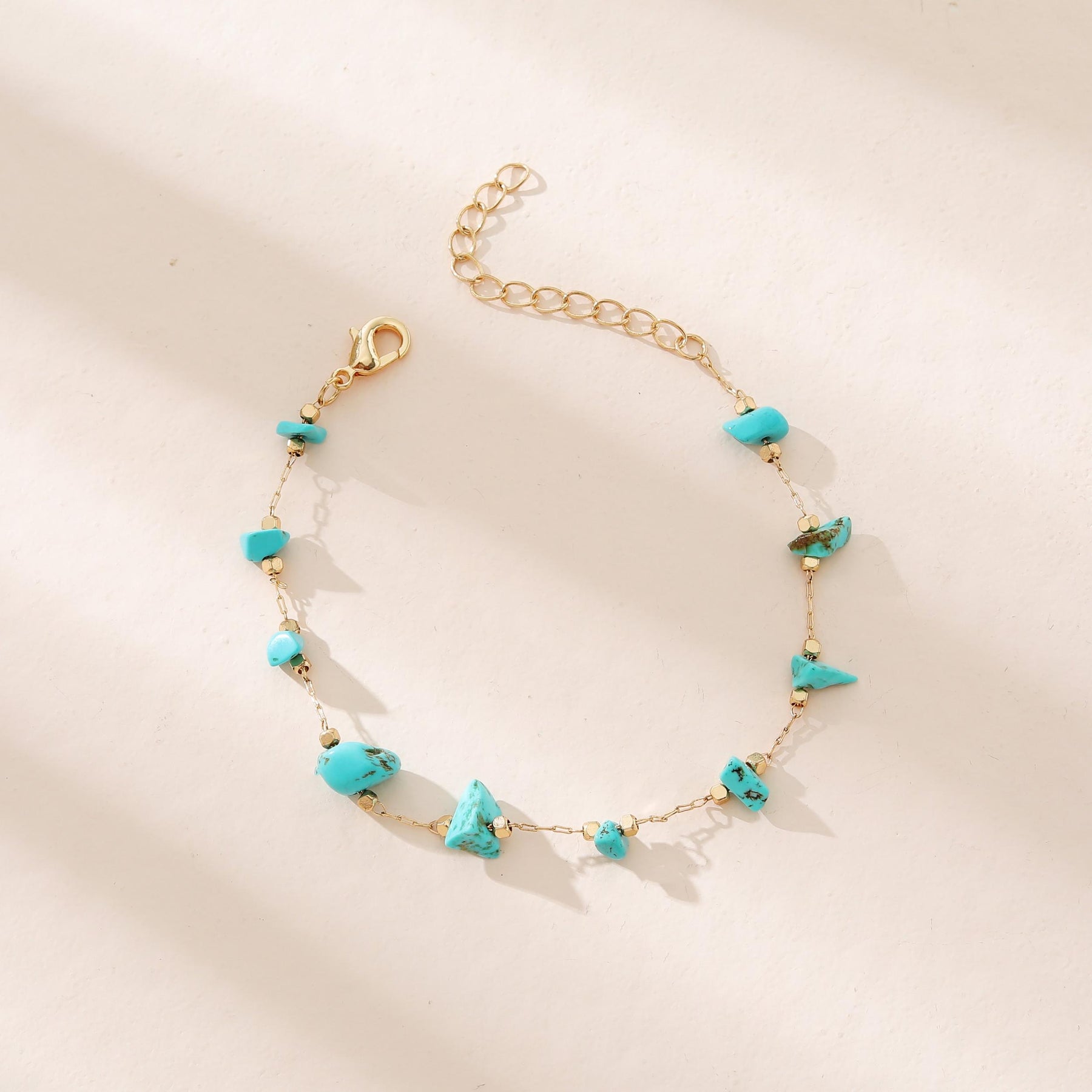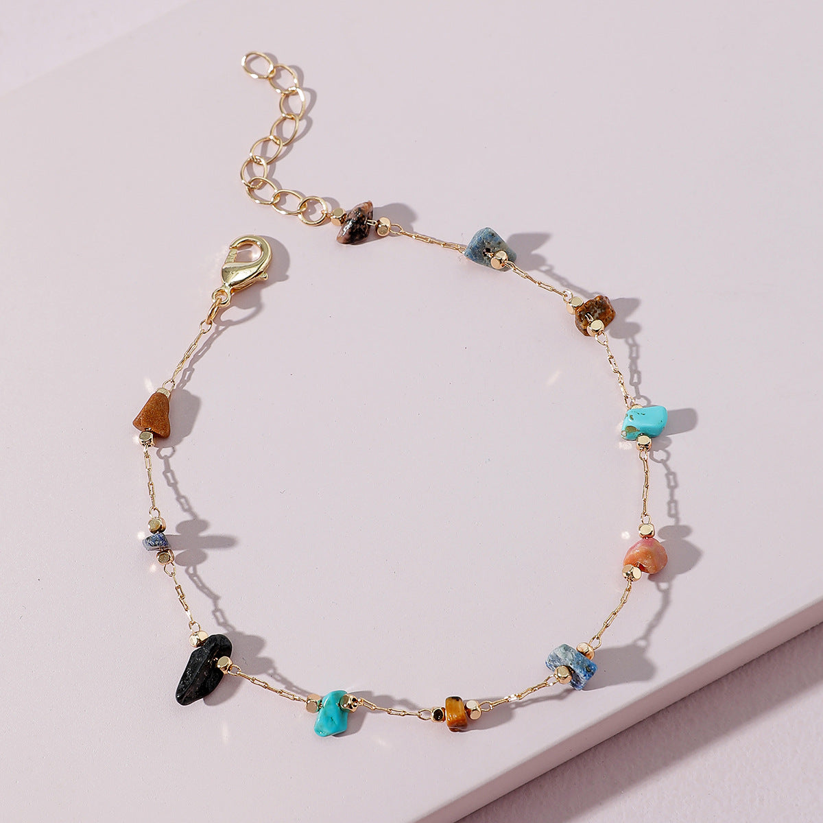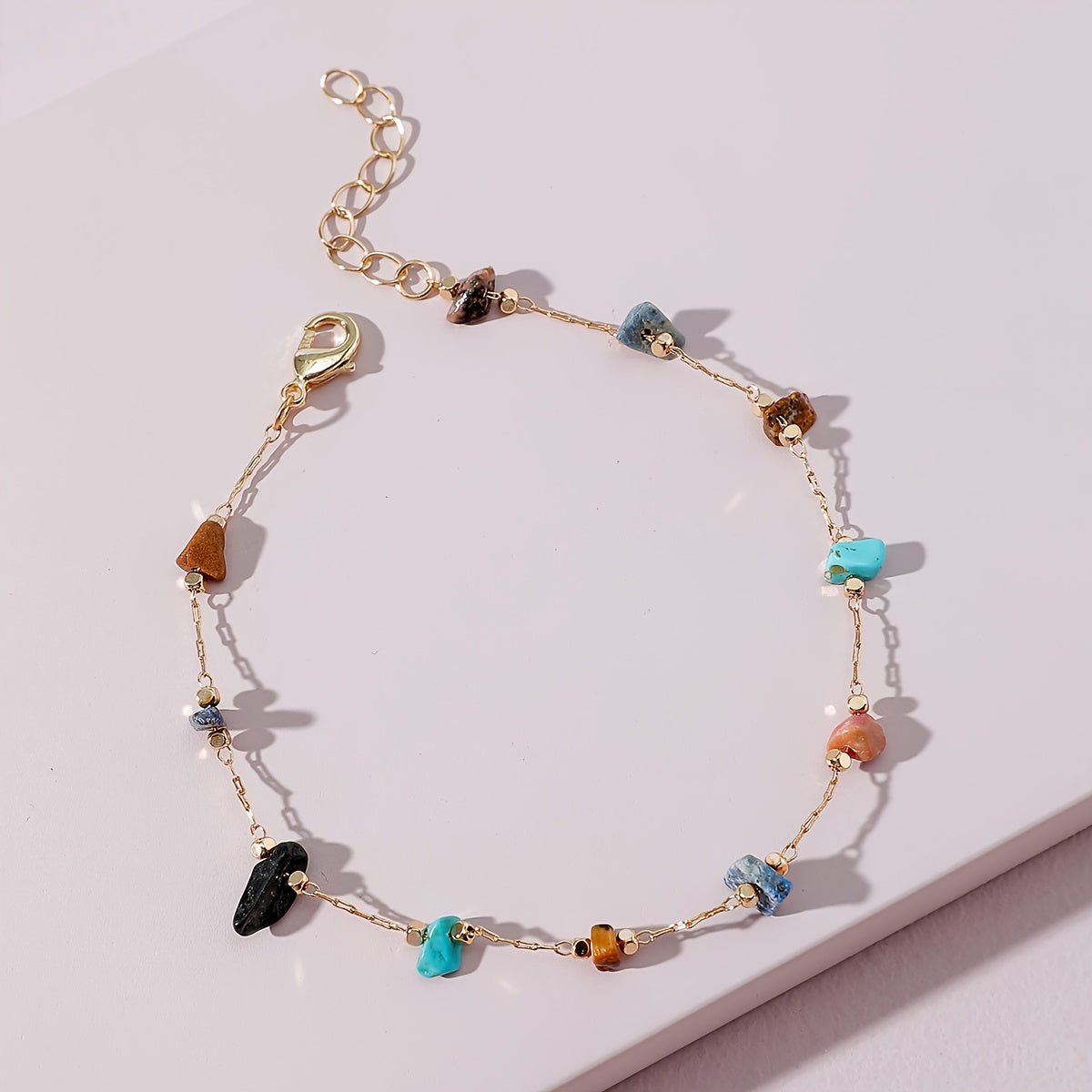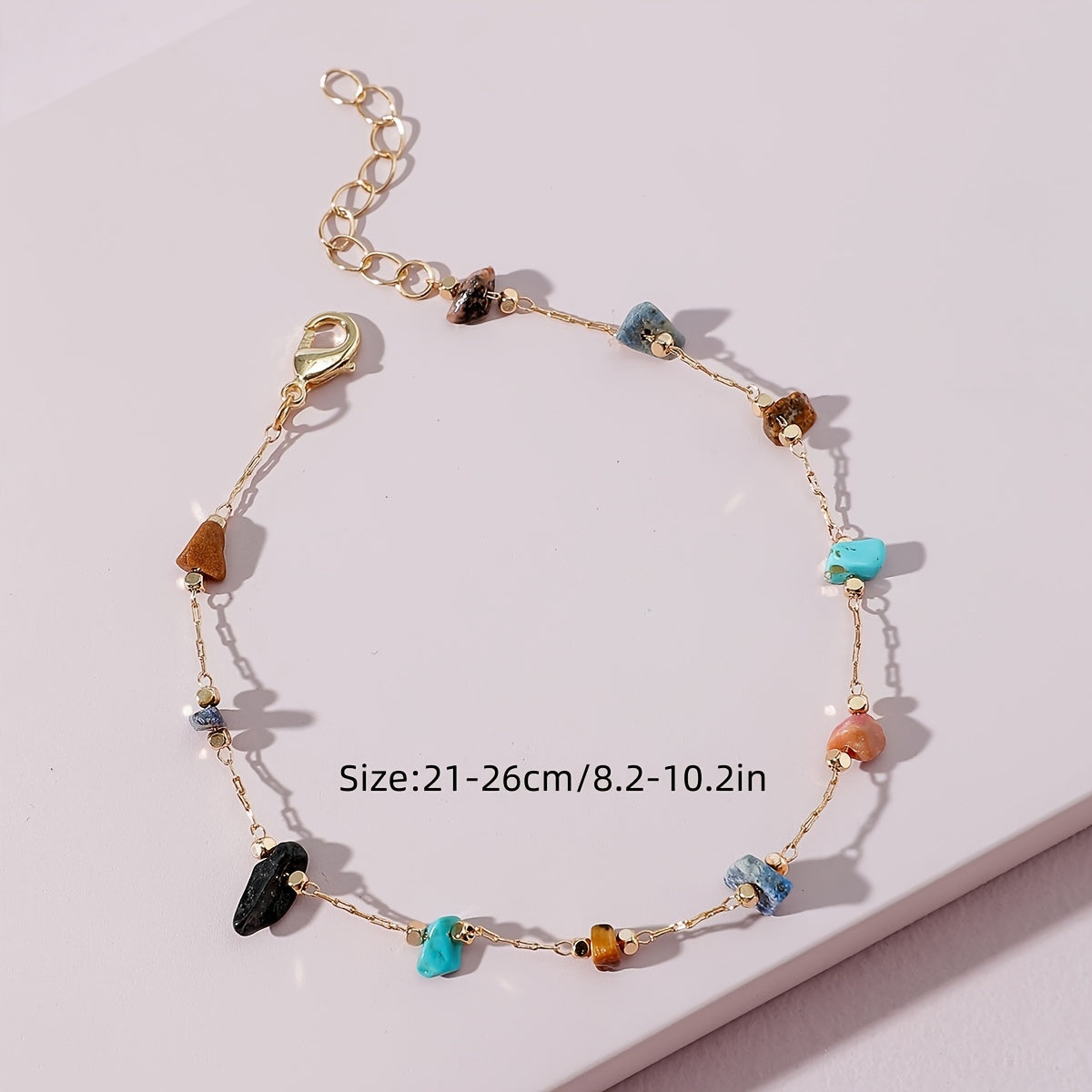 Add a pop of color to your ankle with this gorgeous anklet featuring colorful stones and a hollow chain design. Perfect for summer and beach outings.