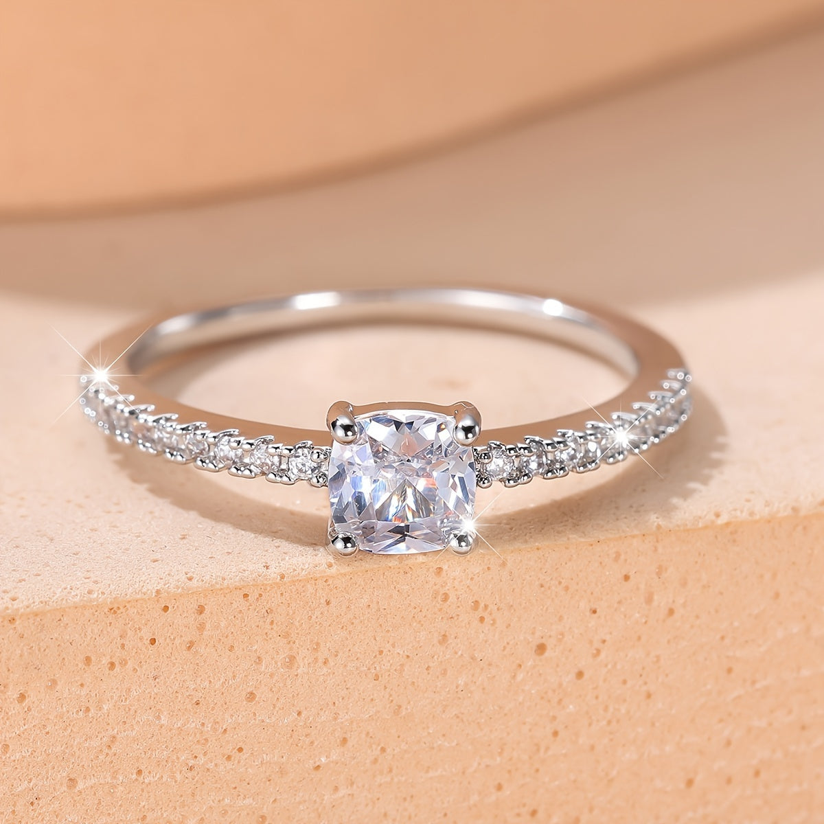 This elegant engagement ring features a synthetic cubic zirconia stone set in durable copper. It is versatile for daily wear or special wedding occasions.