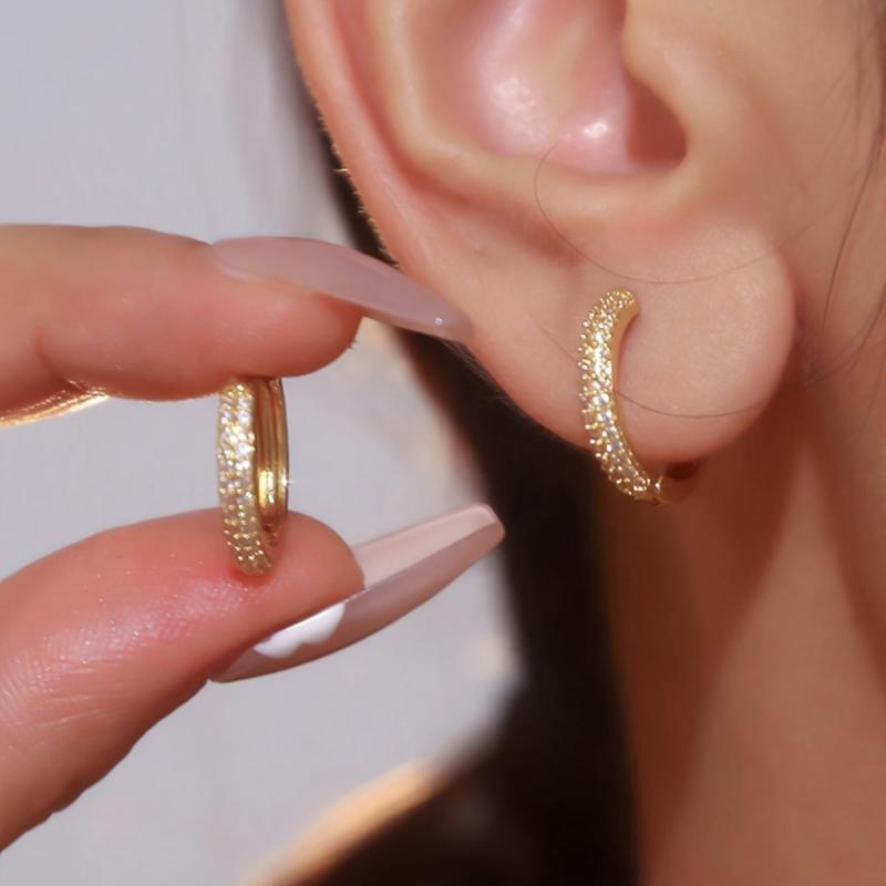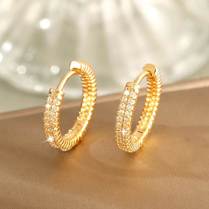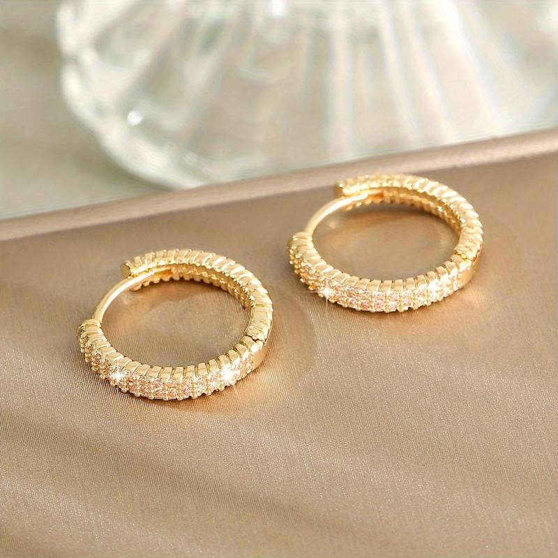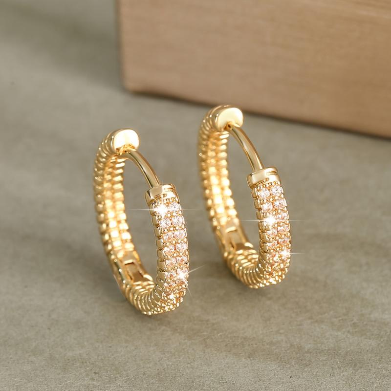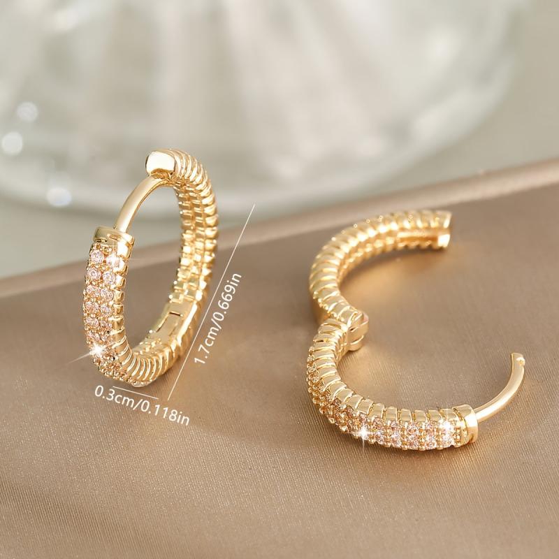 These copper hoop earrings with zirconia inlays are a perfect addition to your jewelry collection. The geometric round design gives them a retro vibe, making them ideal for dating and as a gift.