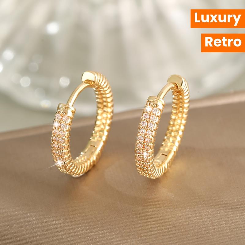Copper Hoop Earrings Zirconia Inlaid Big Round Hoop Retro Earrings
