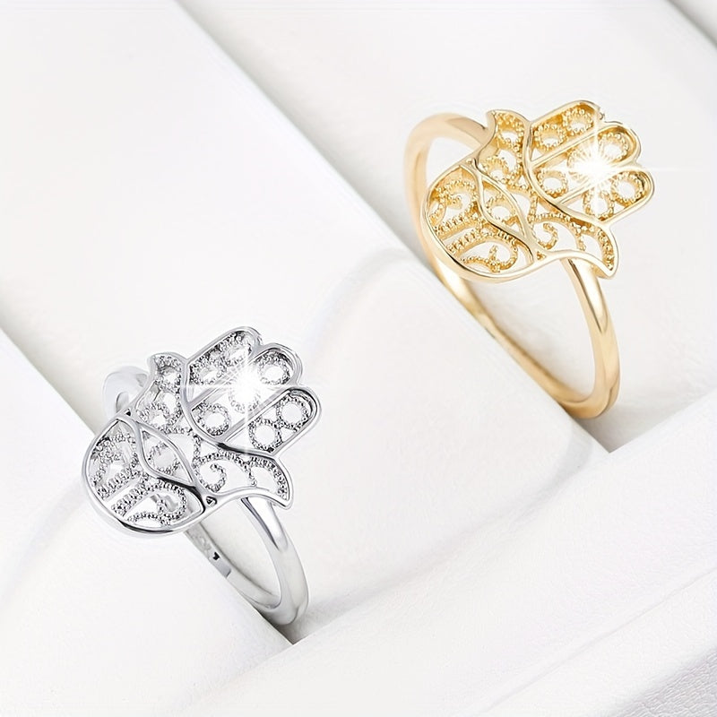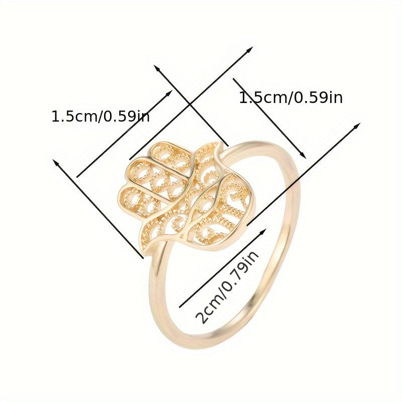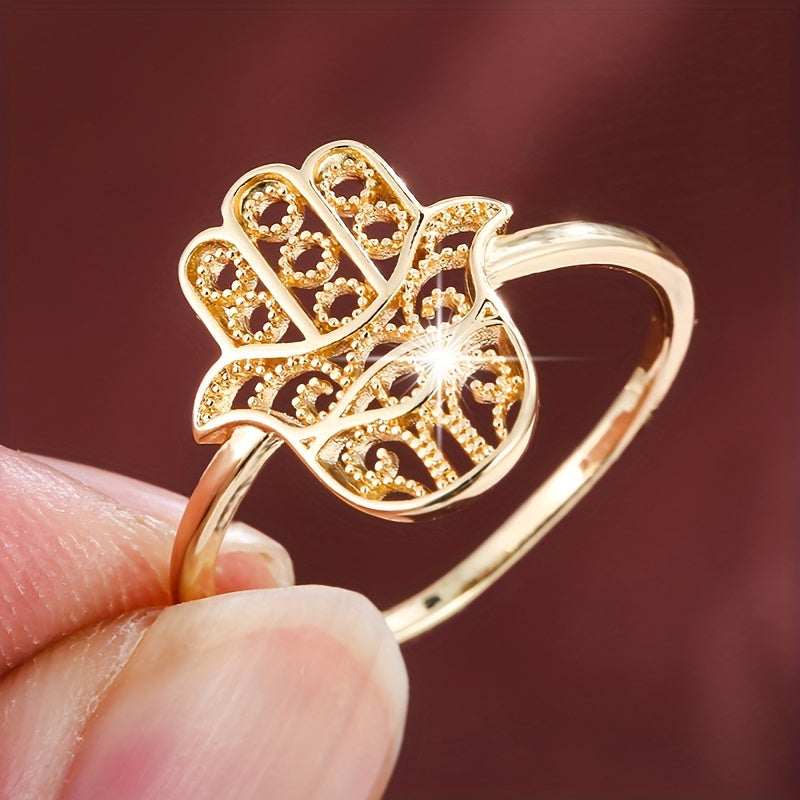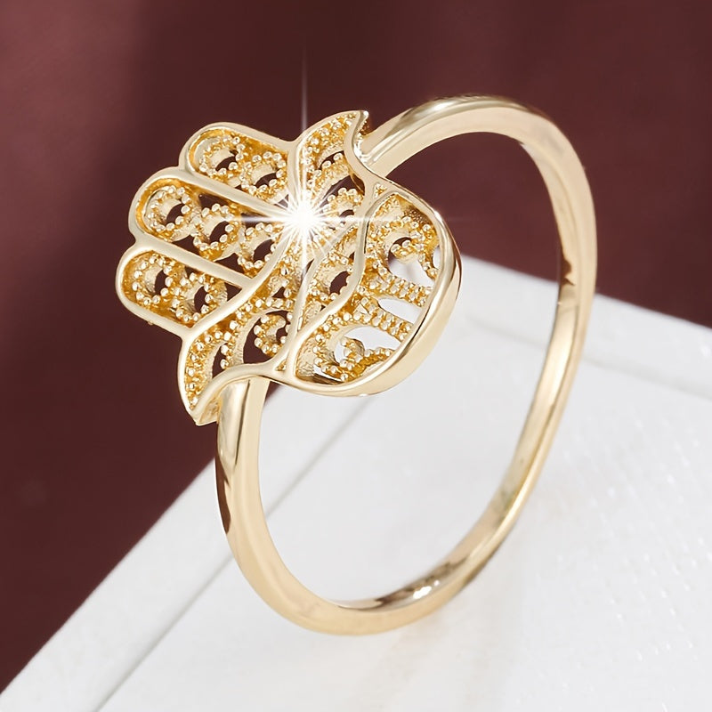 This copper palm shaped ring is a versatile all season accessory perfect for daily wear. It features a unique design that adds a touch of elegance to any outfit.
