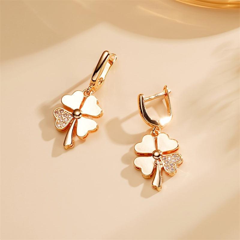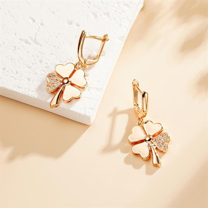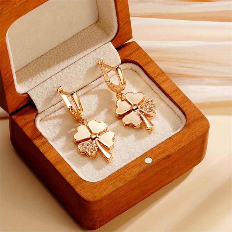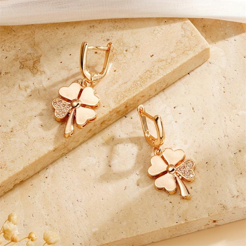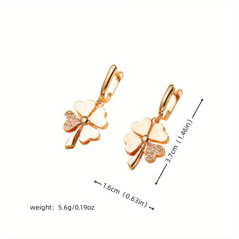 Elegant pair of earrings featuring a four leaf clover design with synthetic Zirconia inlay. Ideal for everyday wear or special occasions.
