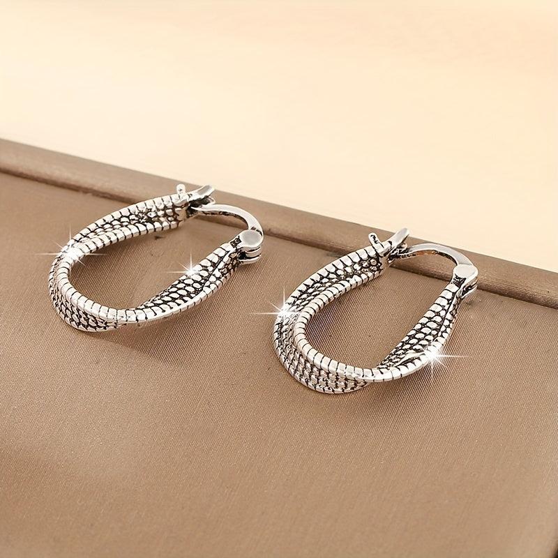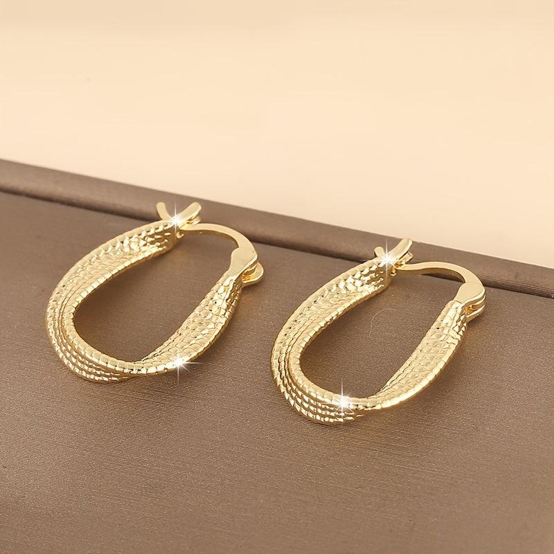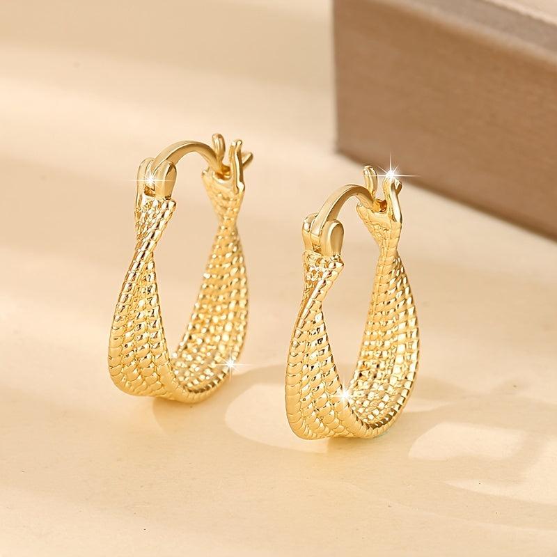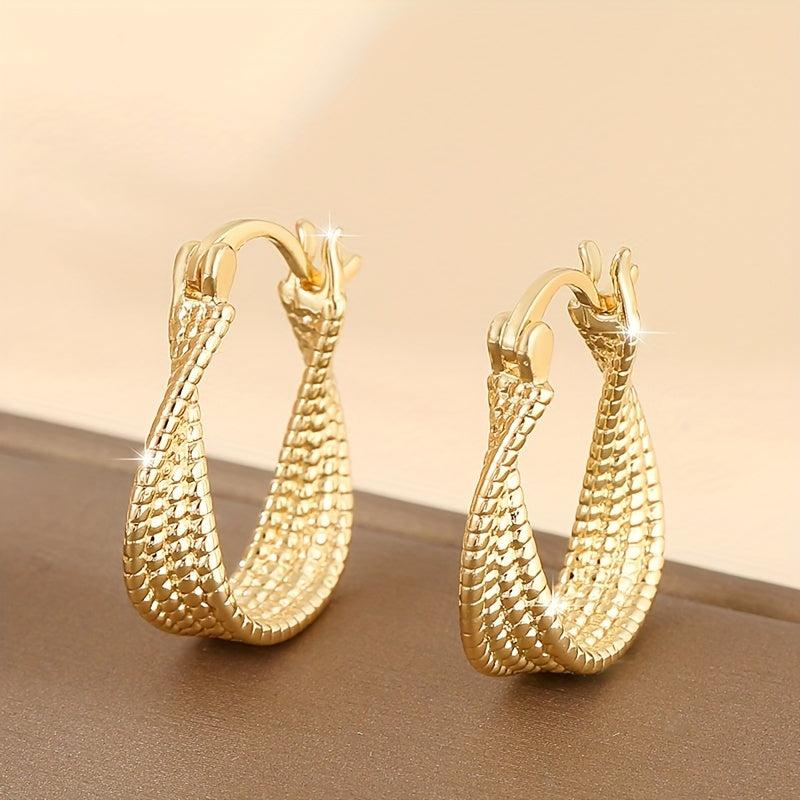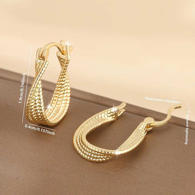Copper Retro Geometric U shaped Twisted Surface Hoop Earrings