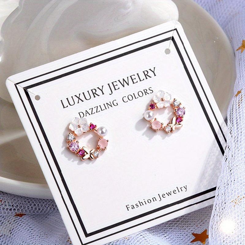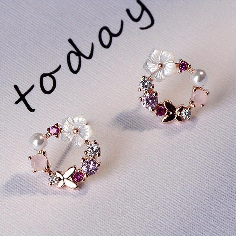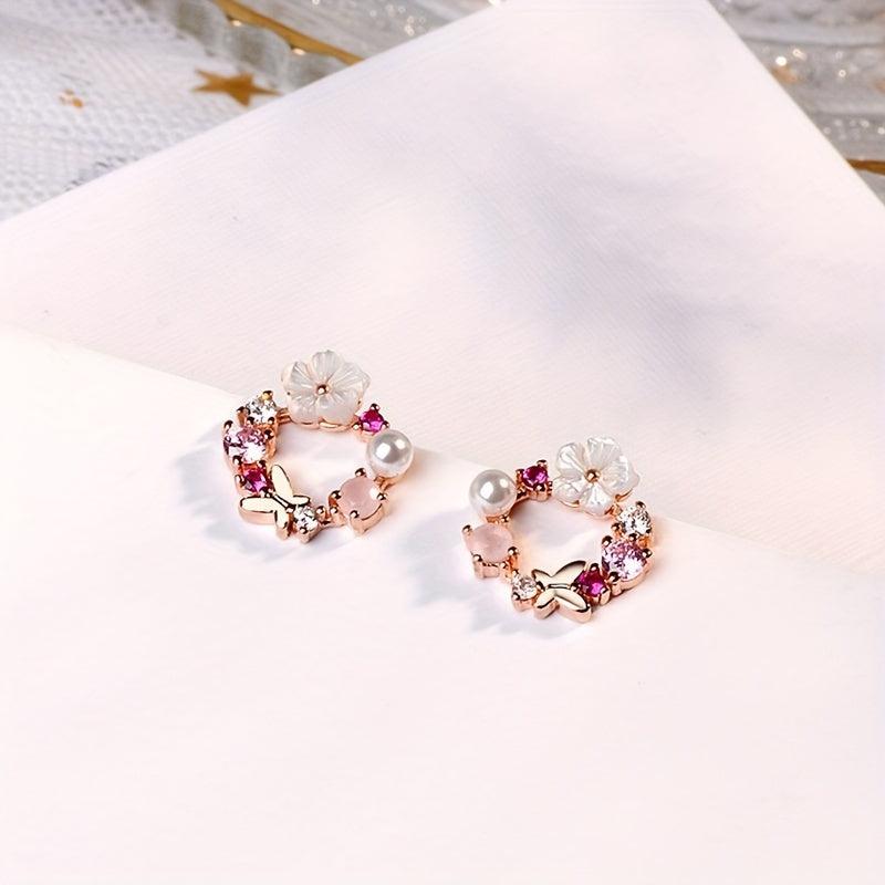 These elegant earrings feature a shell flower bowknot design with synthetic zirconia accents, perfect for gift giving and weddings.