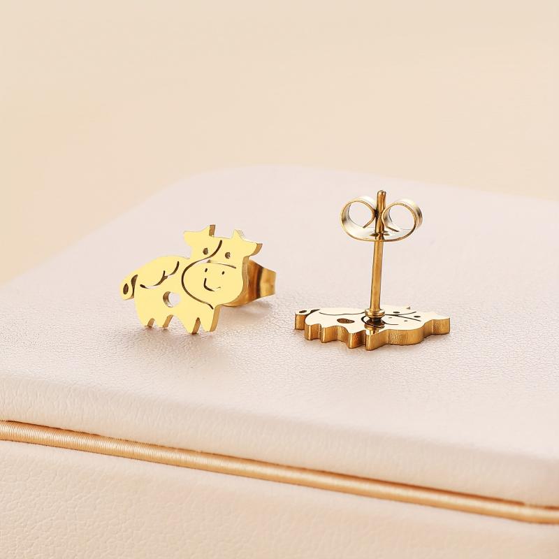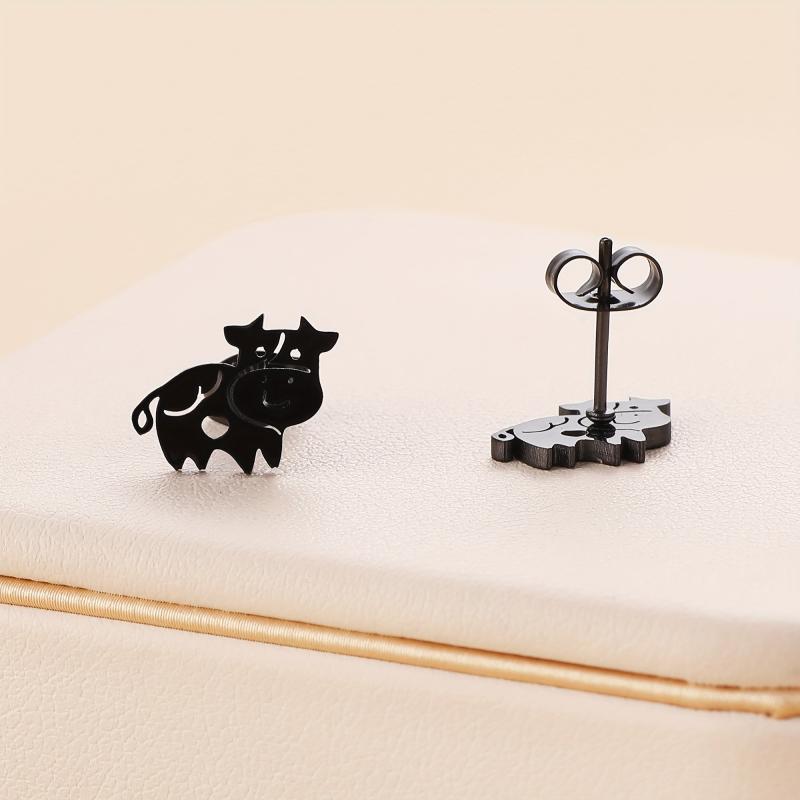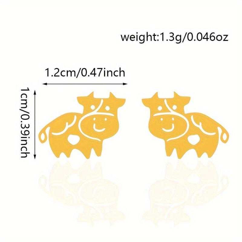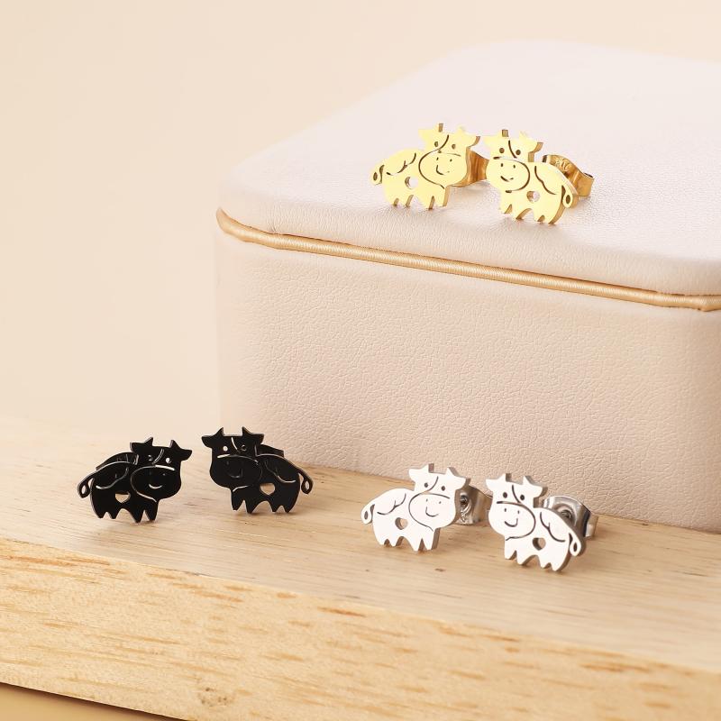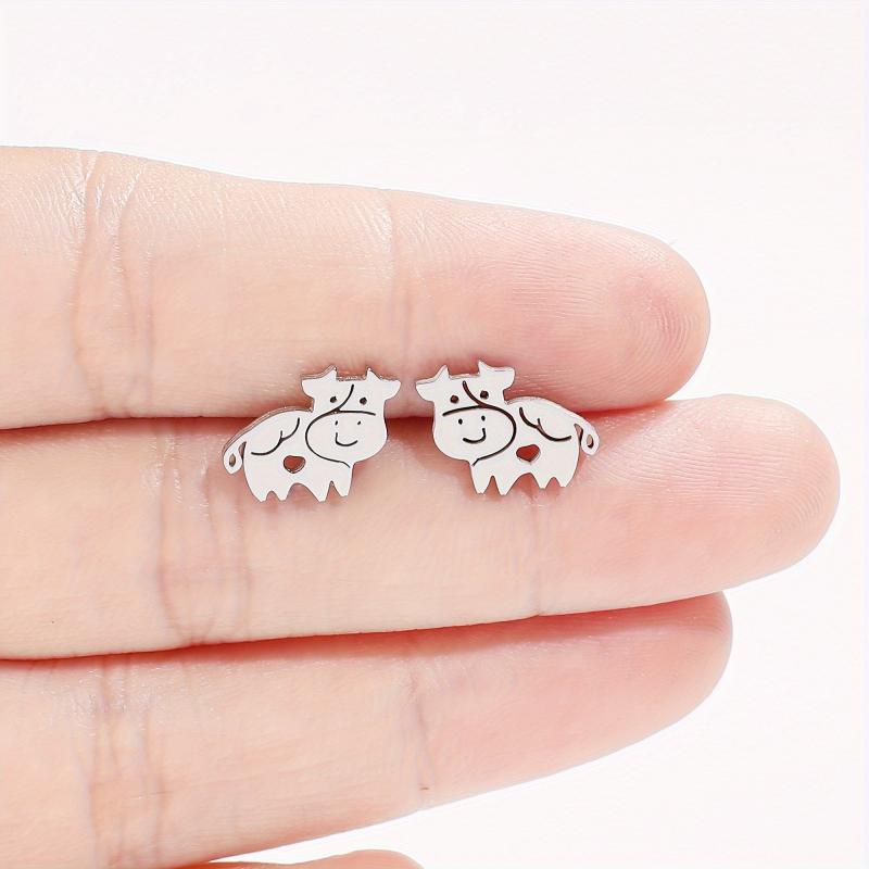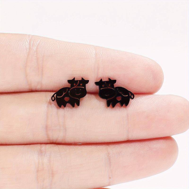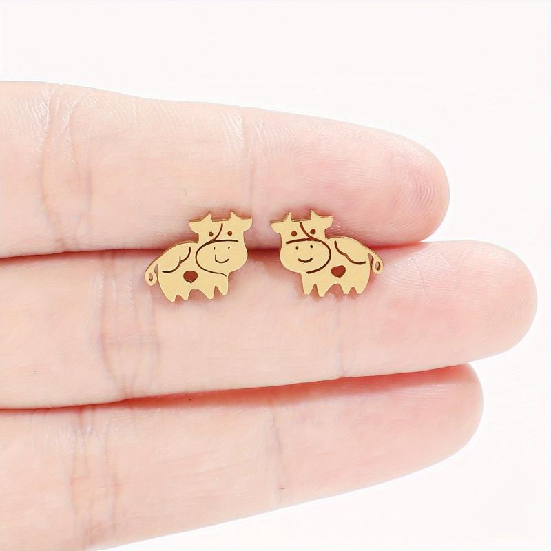 Adorable cow-shaped earrings made of durable stainless steel with hypoallergenic enamel posts, perfect for daily wear.