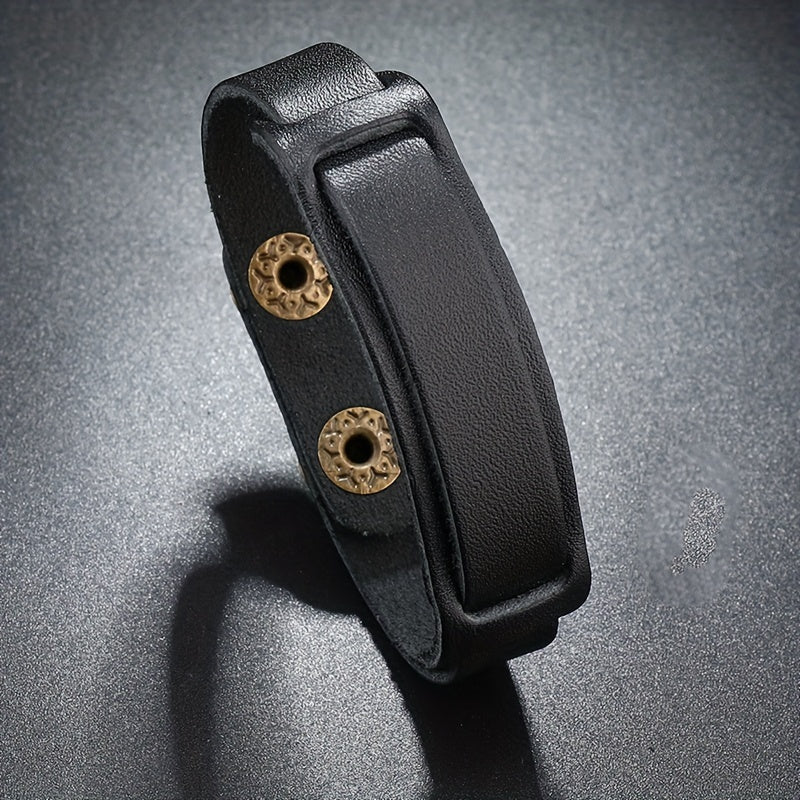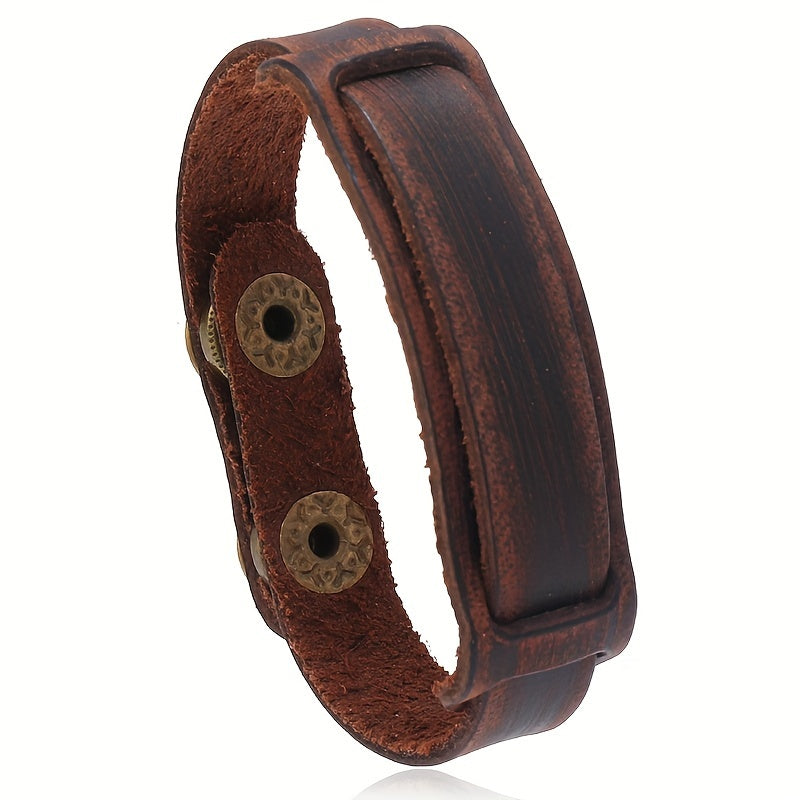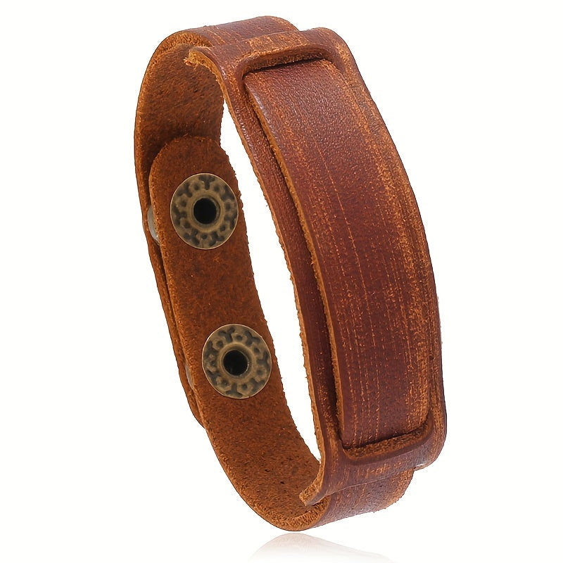 This fashionable cowhide leather bracelet for men features a punk layer design with adjustable fit. The retro style adds a touch of edginess to any outfit.