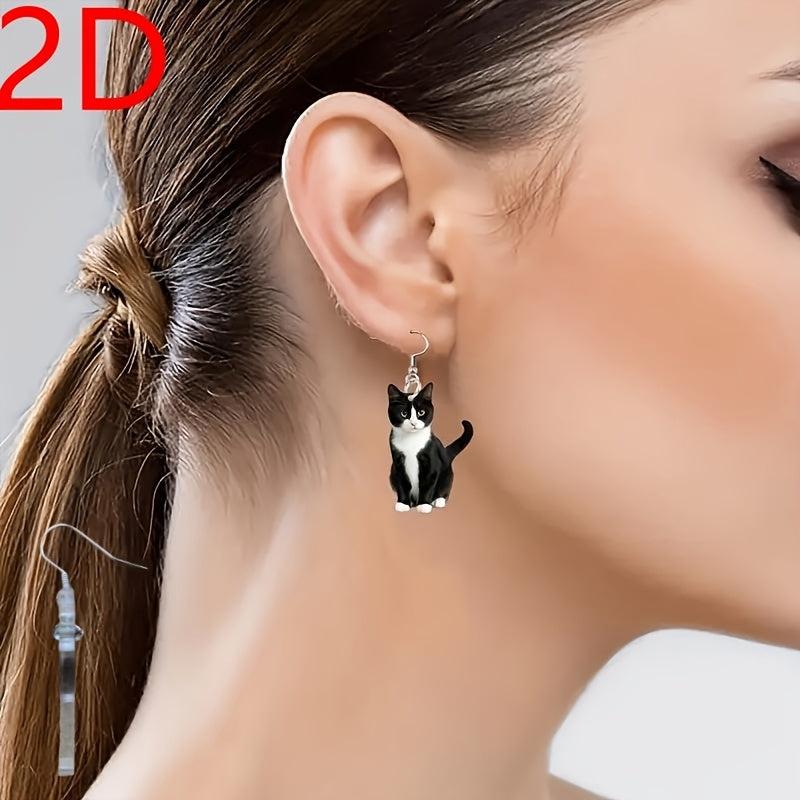 These 2D flat acrylic earrings feature a fashionable and humorous cartoon kitten design, adding a touch of charm to your outfit. Lightweight and durable, these earrings are perfect for women who love unique accessories.