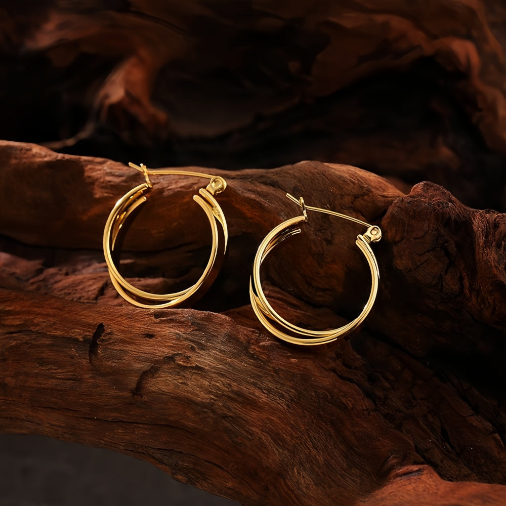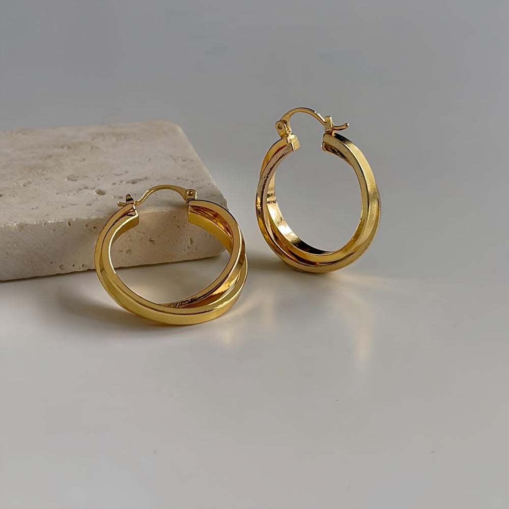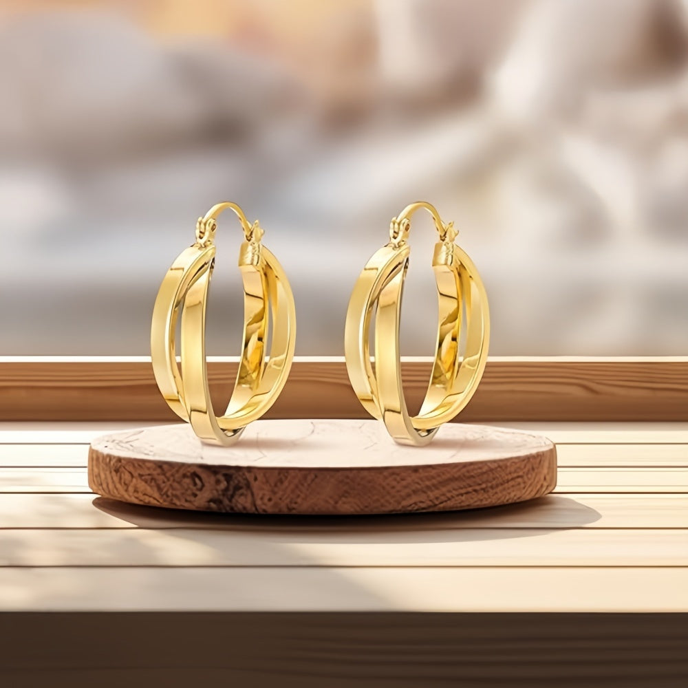 Cross & Circle Earrings 18K Gold Plated 925 Sterling Silver Hooks