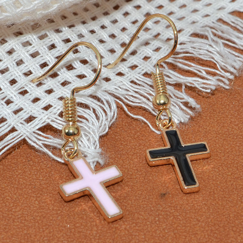 These silver plated earrings feature a cross design, suitable for both men and women. Perfect for adding a stylish touch to any outfit.