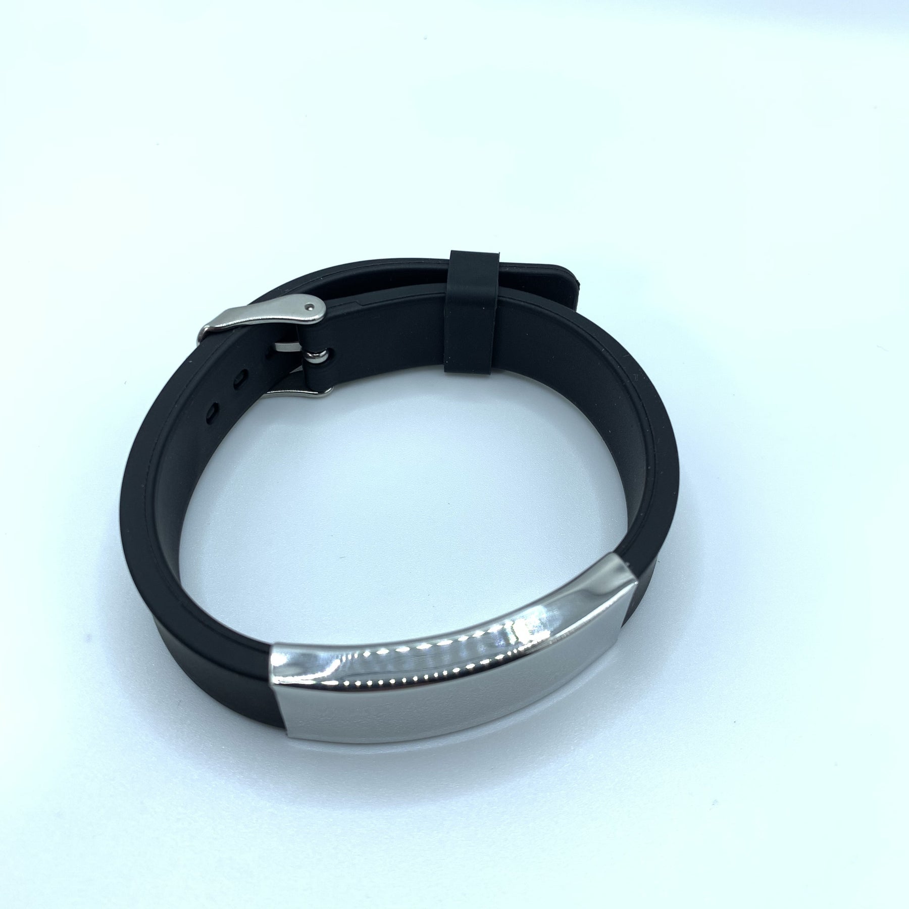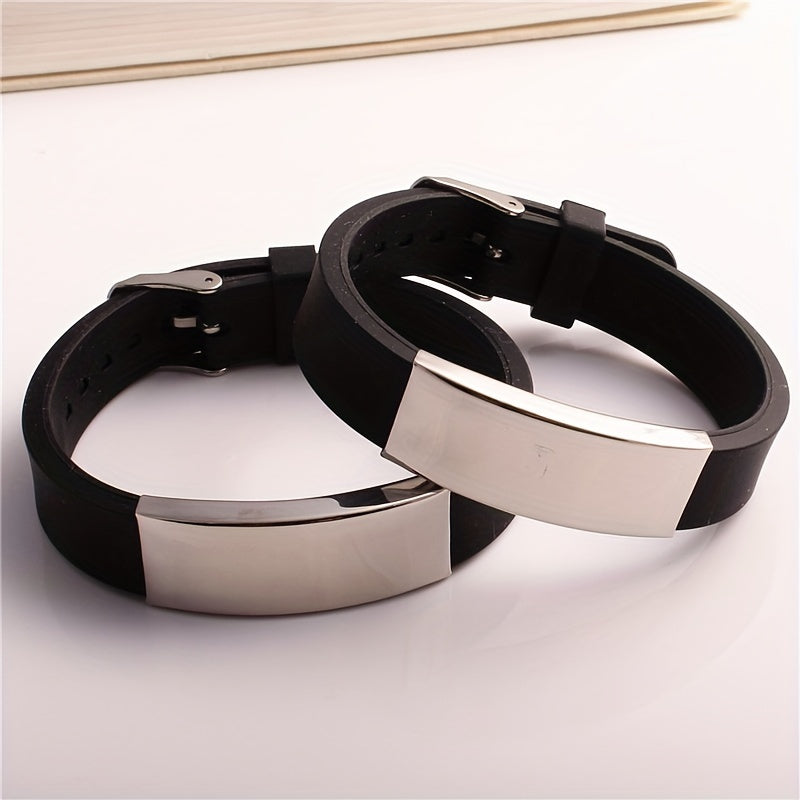 This stainless steel bracelet can be personalized with custom engraving. The length is adjustable for a perfect fit.