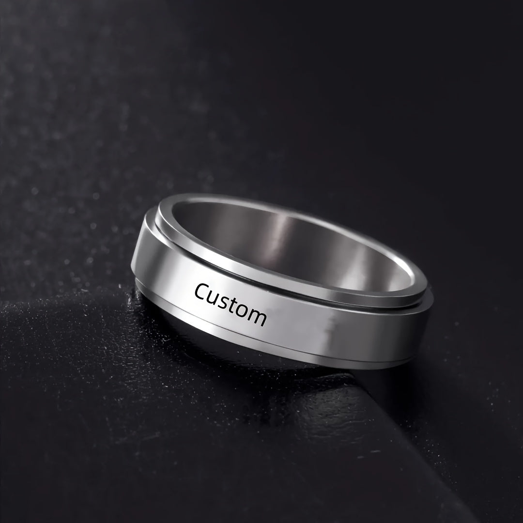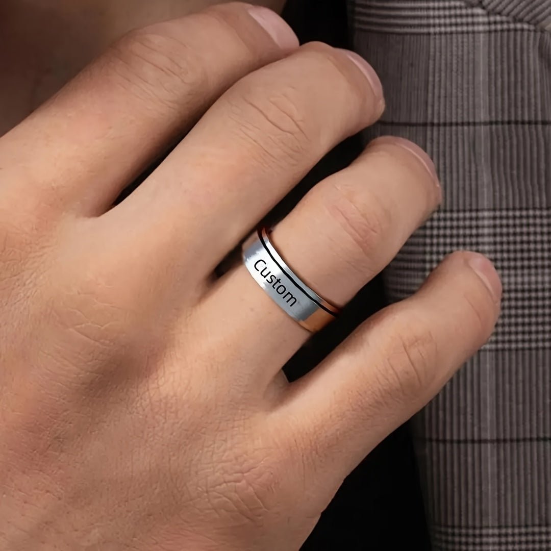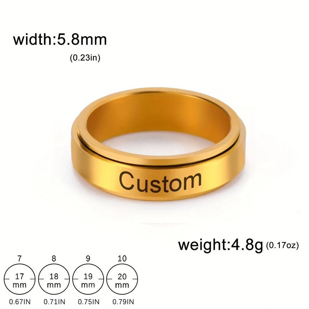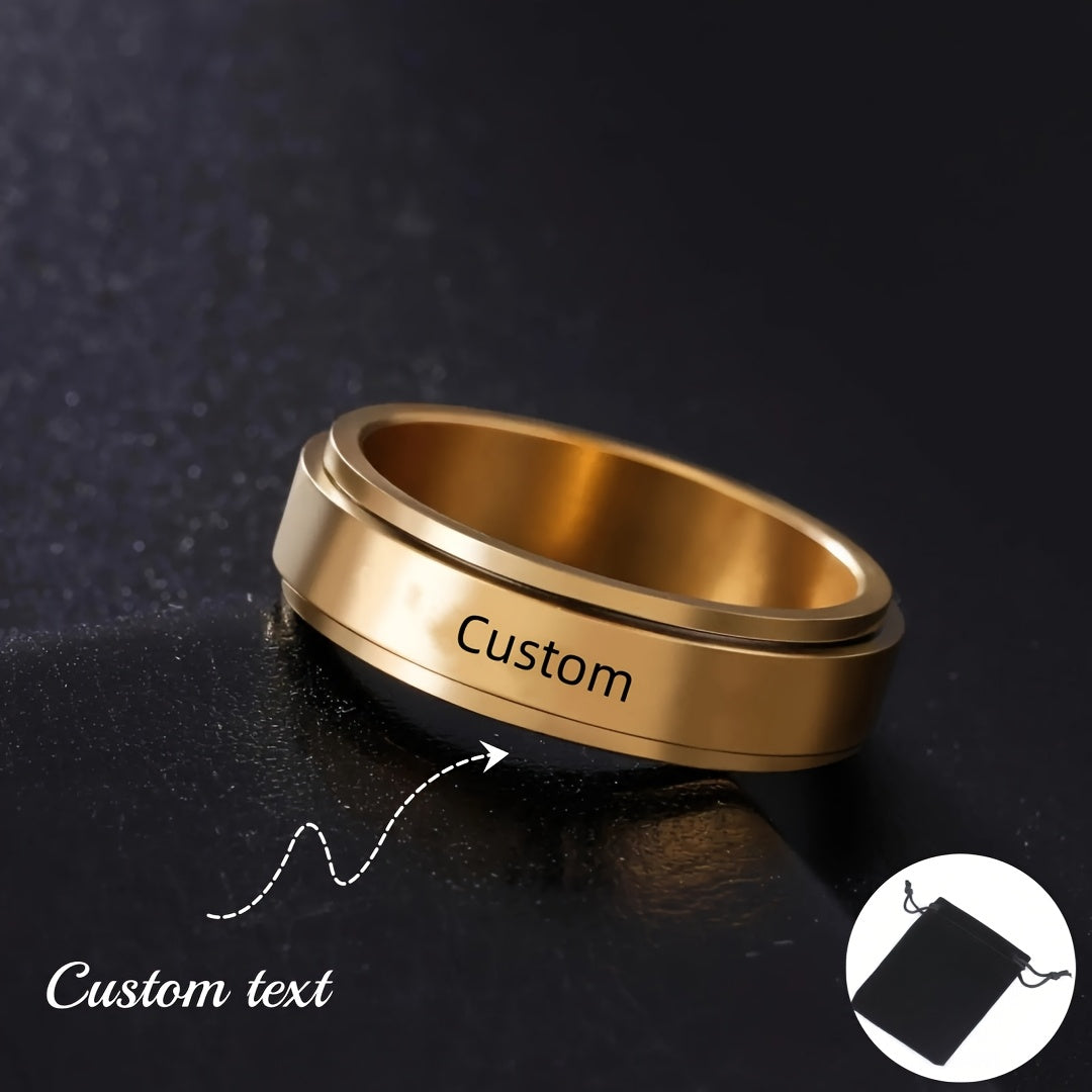 This personalized ring features modern minimalist design, perfect for both men and women. Made of durable stainless steel in polished golden tone.