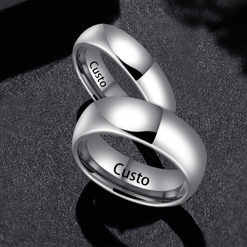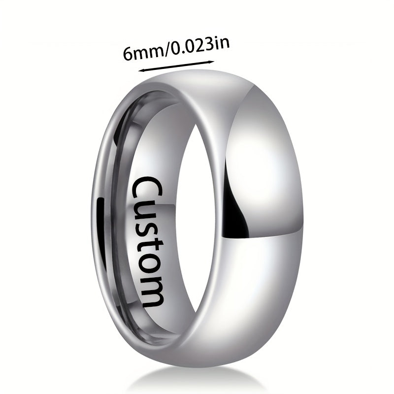 This custom stainless steel ring is a perfect gift for birthdays, weddings, graduations, or Christmas. It features personalized text engraving, a polished finish, and a durable, comfortable fit.