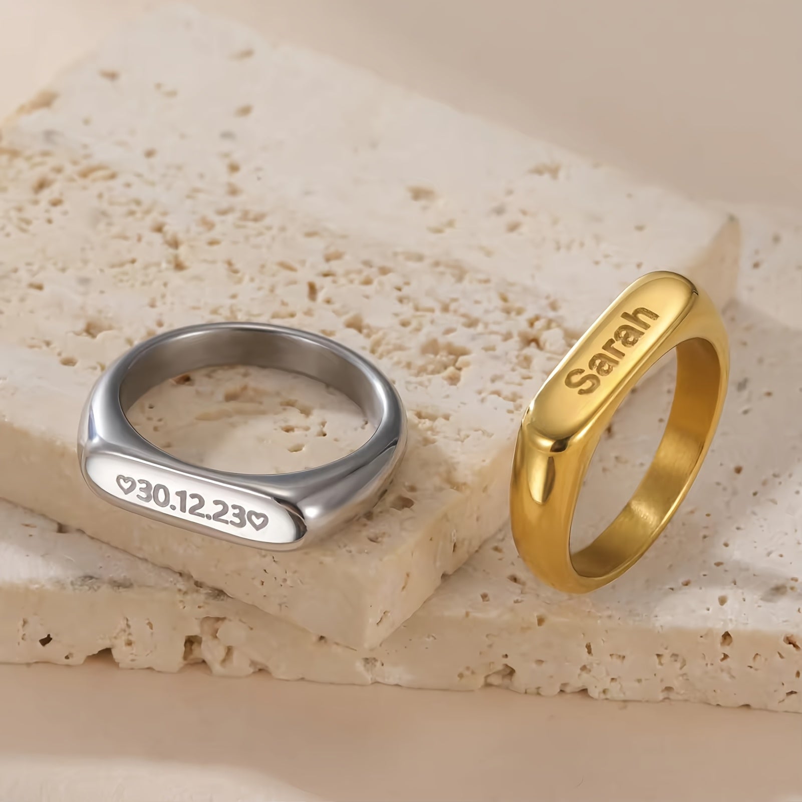 Personalize your style with this custom flat ring featuring your name. Unisex design suitable for anyone.