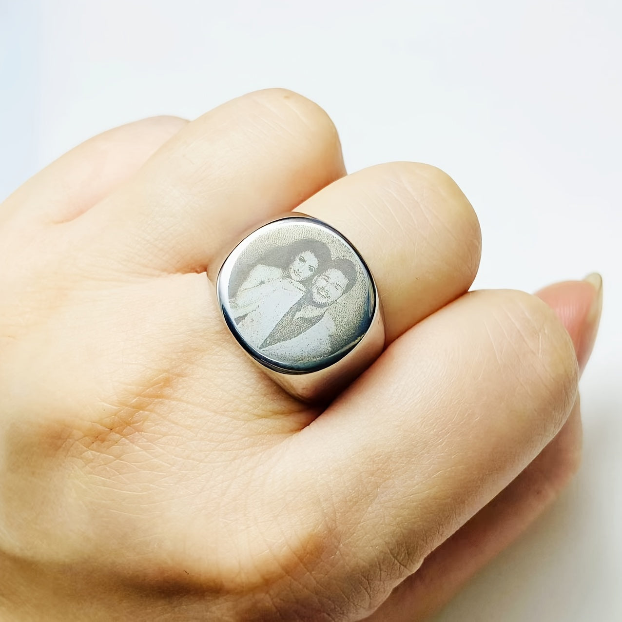 This unique stainless steel ring is a perfect hip hop avant-garde accessory for both men and women. Personalize it with a custom photo for a truly special touch. Great as a gift for friends and family, this durable ring is designed to stand out in any crowd.